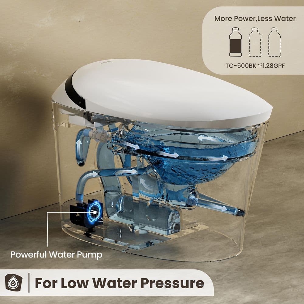 Efficient Dual Flush: Save water with 1.08/1.45 GPF options and powerful pump-assisted flushing.