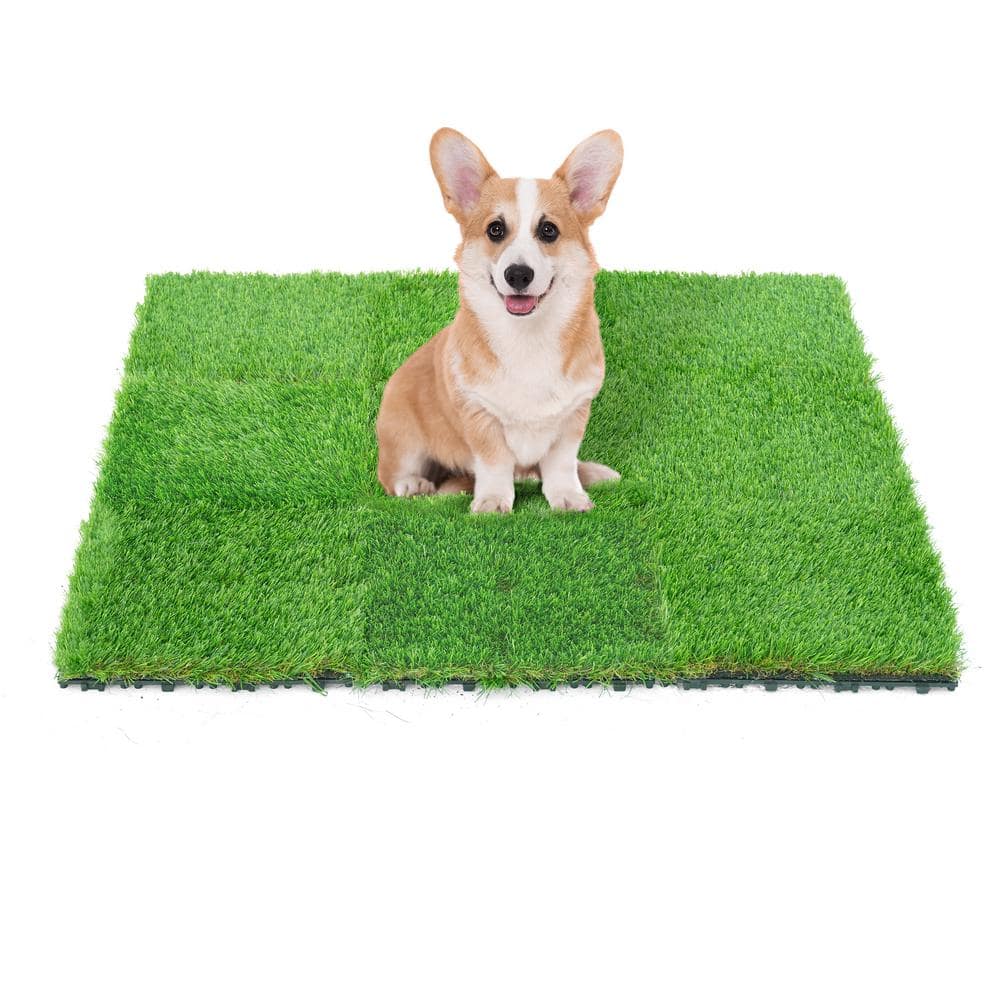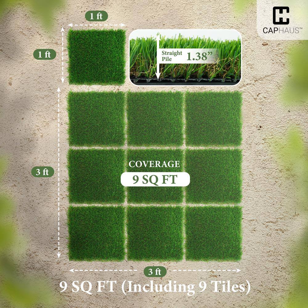 CAPHAUS Green 12 in. x 12 in. Artificial Grass Interlocking Tiles, Interlocking Fake Faux Grass Pet Turf (9 Pack)