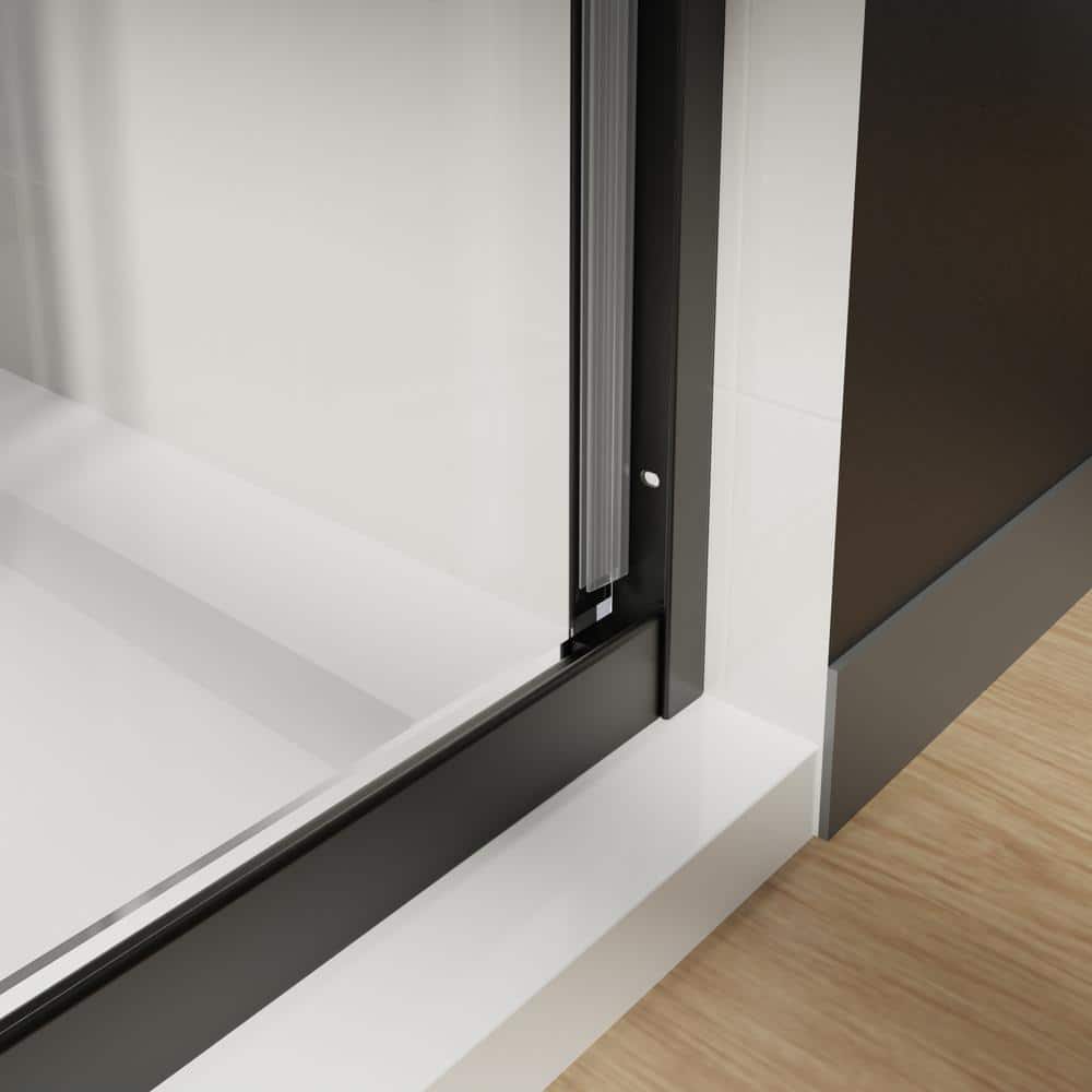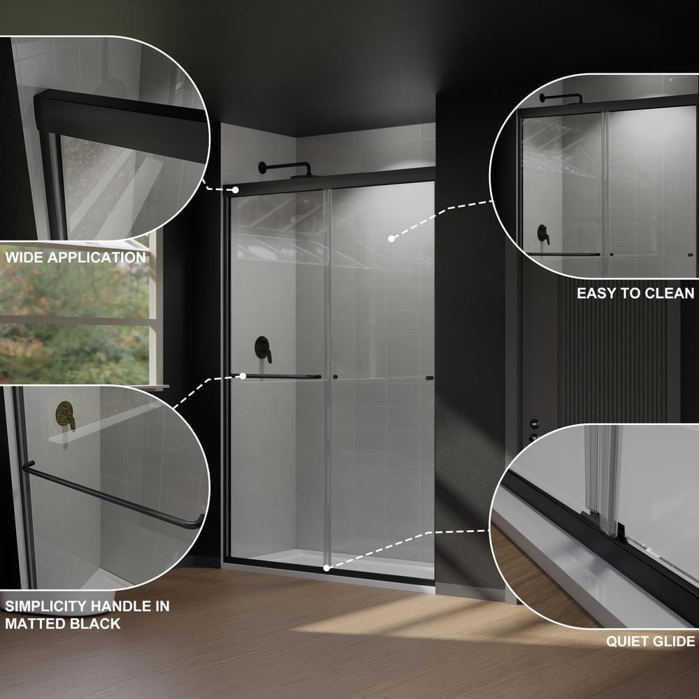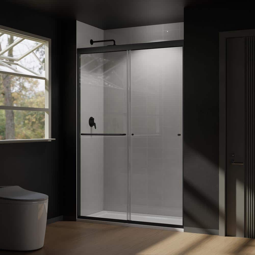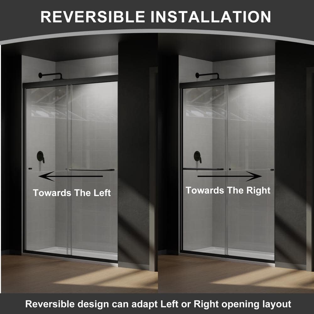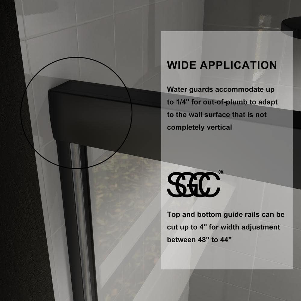 Elevate your bathroom design with the CASAINC 48" Framed Sliding Shower Door in sleek black. This stunning shower enclosure combines contemporary style with superior functionality, featuring SGCC-certified tempered glass and a water-repelling Spot Guard coating for easy maintenance. Effortlessly transform your shower space with its reversible installation feature, designed for flexible opening options.