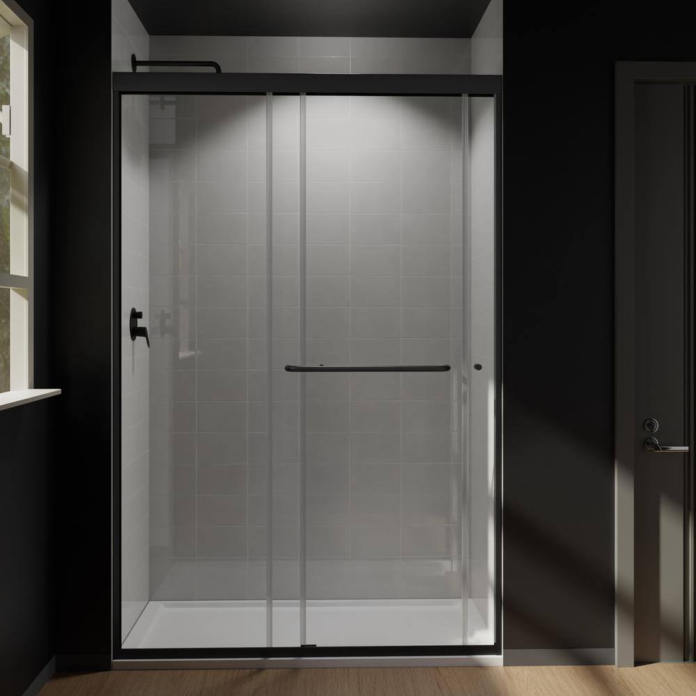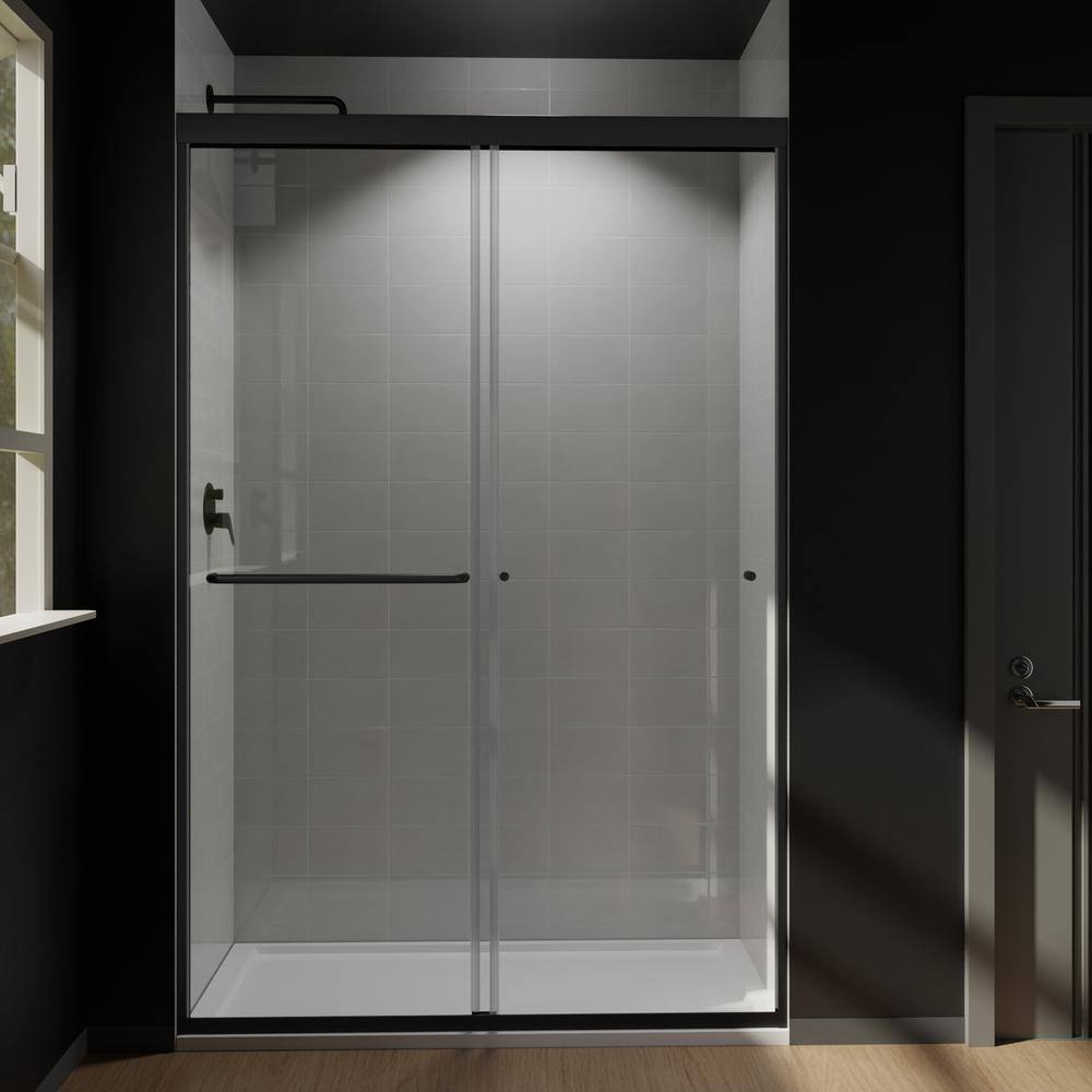 CASAINC 48" Black Framed Sliding Shower Door with Tempered Glass