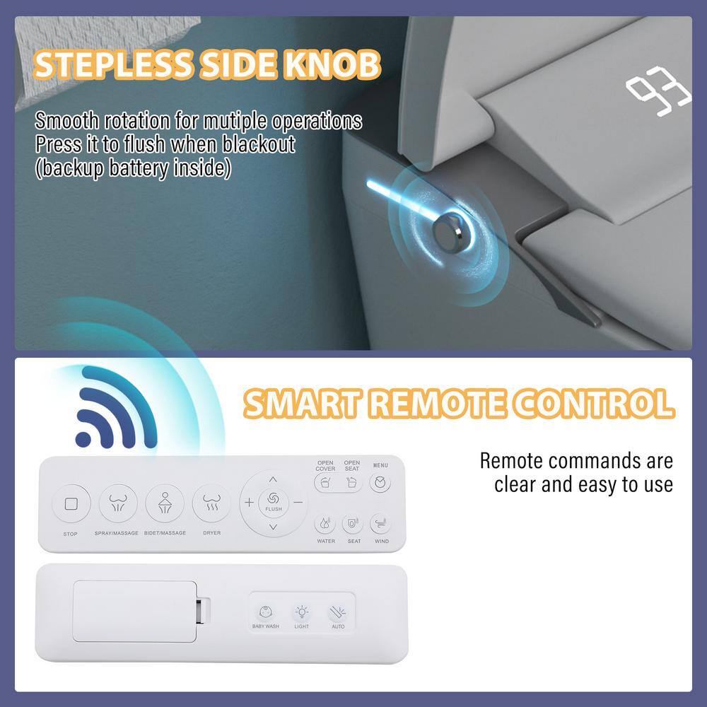 Hands-Free Flushing: Enjoy automatic flushing with options to control via foot sensor, remote, or button for a truly convenient experience.