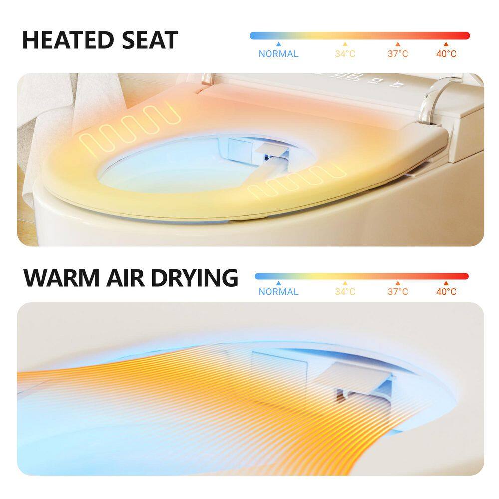 Heated Seat & Warm Air Dryer: Enjoy optimal comfort with a heated seat and warm air drying, reducing toilet paper use.