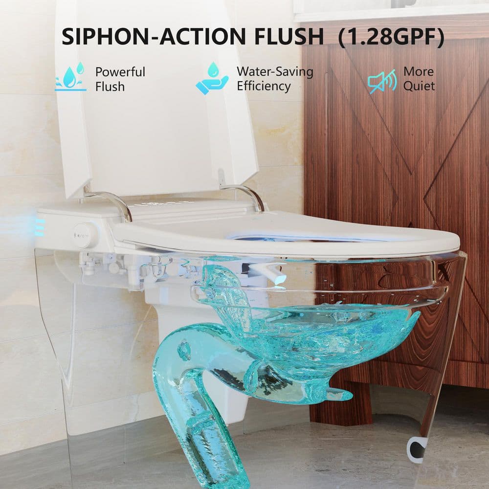 Multiple Flushing Options: Choose from voice, foot sensor, remote, and traditional flushing methods.