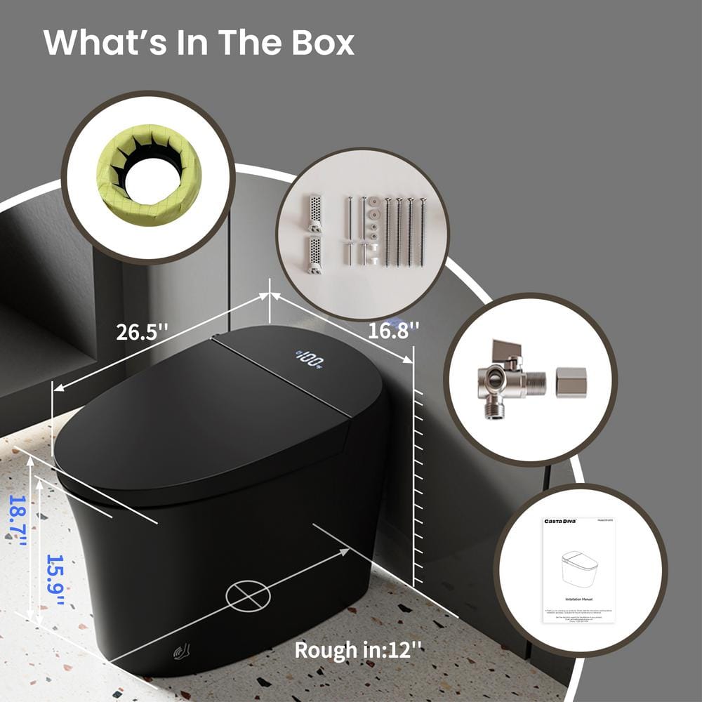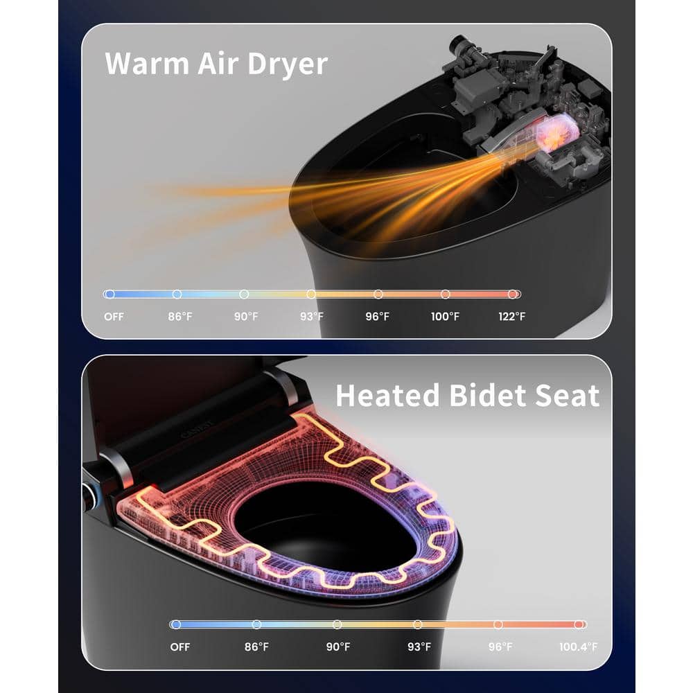 Comfort & Hygiene: Enjoy the heated seat, warm water bidet, and air dryer for maximum comfort and cleanliness.