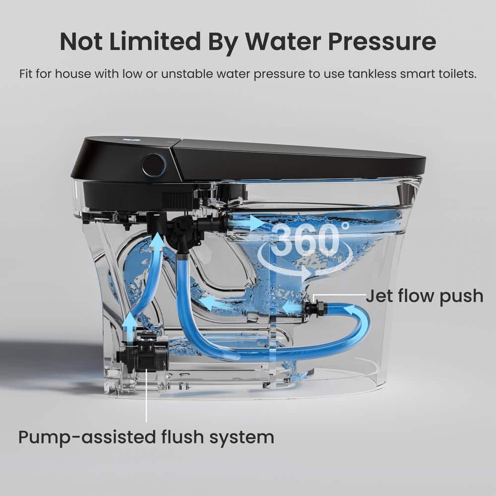 A: The toilet includes a manual flush option, ensuring functionality even during power outages.