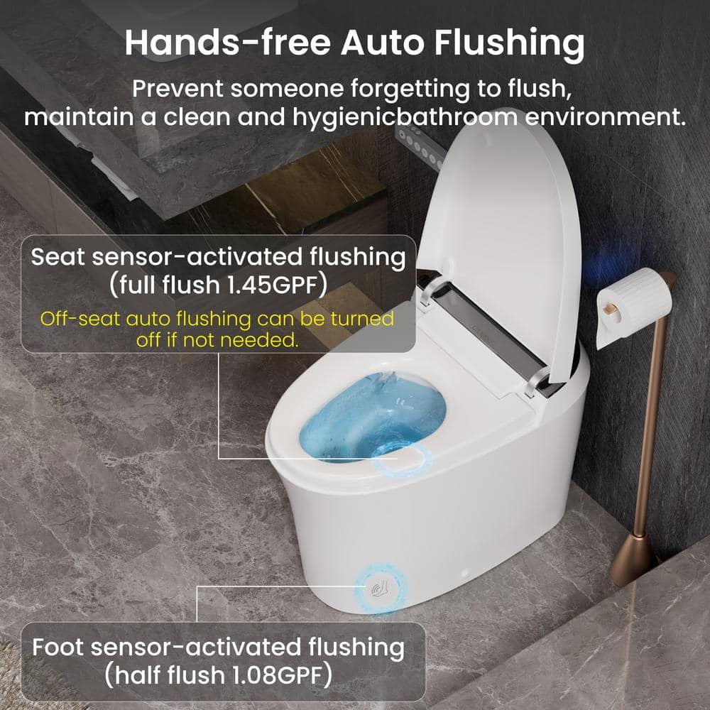 Hands-Free Operation: Foot sensor and auto off-seat flush enhance hygiene and ease of use.