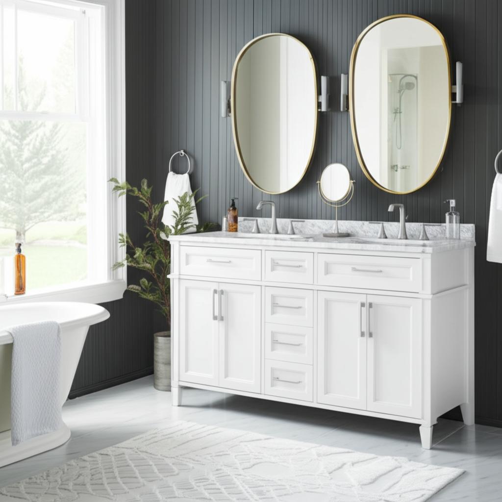 Transform your bathroom with the Caville 60-inch Double Sink Vanity—where timeless design meets modern convenience.