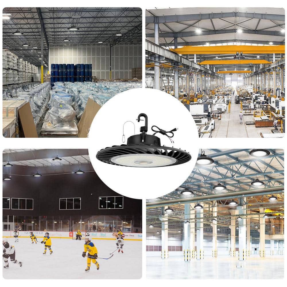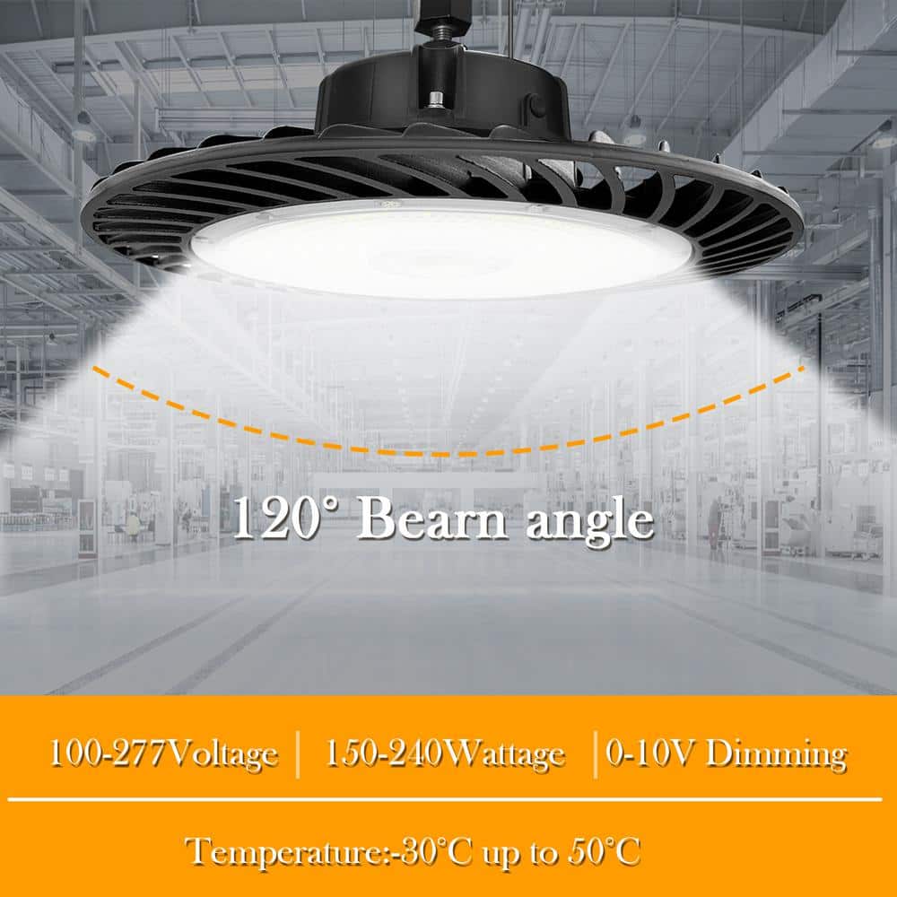 Illuminate large commercial spaces effortlessly with the Cedar Hill 240W Black UFO LED High Bay Light. Offering powerful illumination up to 32,000 lumens, this fixture is perfect for spaces with 20 to 30 ft ceilings. Capable of dimming for adaptable ambiance, it’s both energy-efficient and durable, enhancing any commercial space while minimizing maintenance costs.