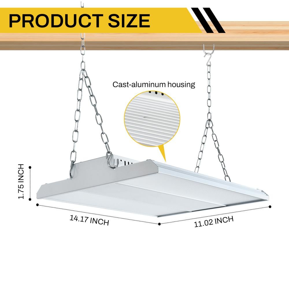 Illuminate large spaces with Cedar Hill's 150W Dimmable Linear High Bay Light. Delivering an impressive 18,000 lumens with 5000K daylight color temperature, it’s perfect for commercial and industrial environments like warehouses, gyms, and workshops. This energy-efficient LED solution is built to last with corrosion-resistant materials and includes simple installation accessories.