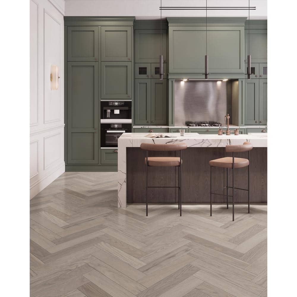 Elevate your living space with the Inverness Oak Herringbone Solid Hardwood Flooring by CENTURY FLOORING. Crafted from premium domestic White Oak, this flooring not only adds warmth but also introduces a modern aesthetic with its classic herringbone pattern. Enjoy its durability backed by a 50-year residential finish warranty, perfect for any high-traffic area.