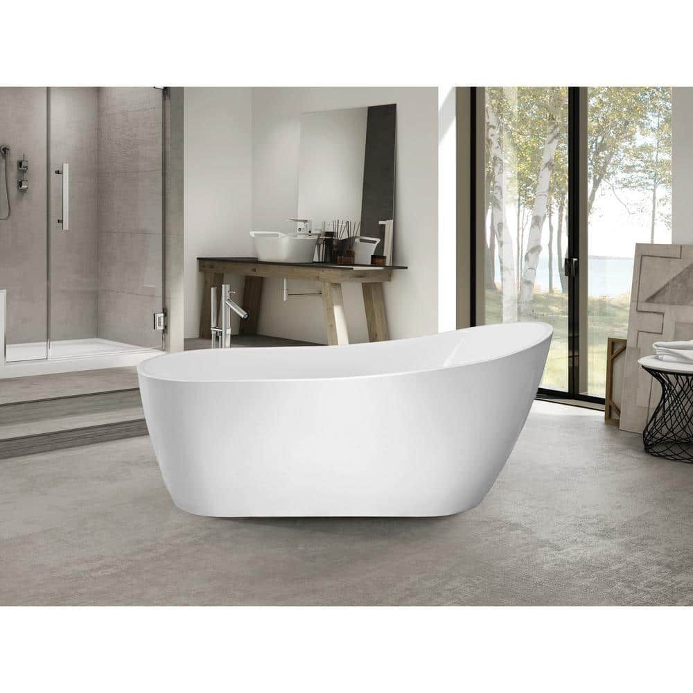 Vanity Art Clermont 59 in. Acrylic Freestanding Flatbottom Bathtub in White