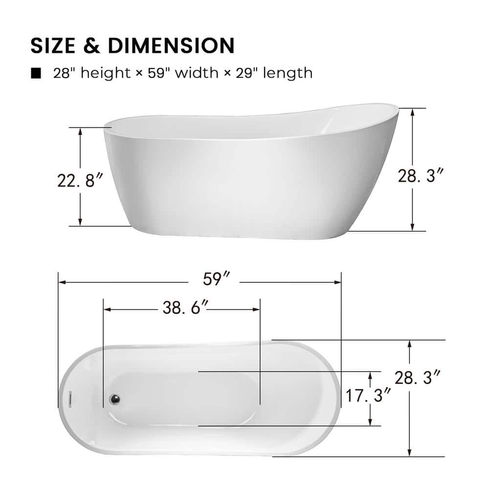 A: Yes, with its 59-inch length and 29-inch width, it fits well in a range of bathroom sizes while still offering a spacious bathing experience.