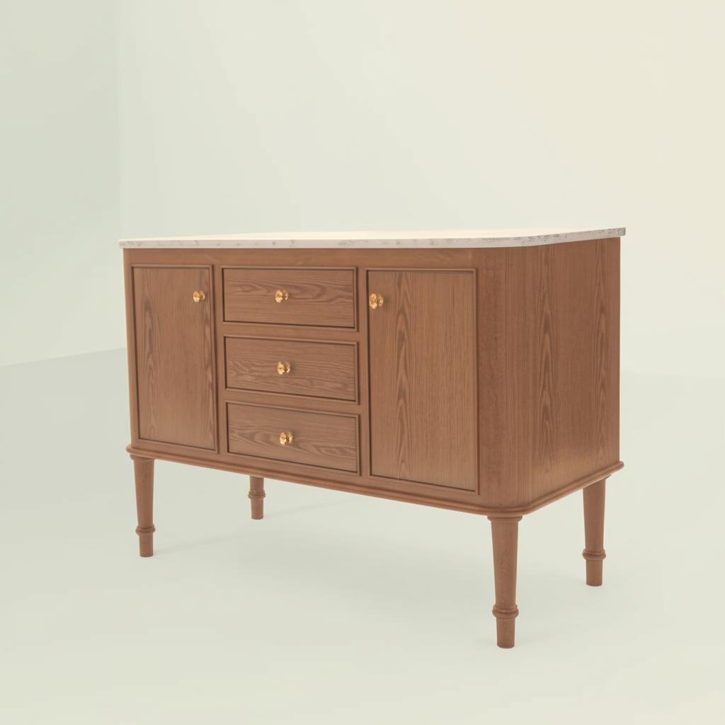The Collette 48-inch vanity combines timeless design with modern functionality. Featuring a cinnamon oak finish and a Carrara marble top, it offers ample storage with soft-close drawers and doors. Perfect for elevating any bathroom space.