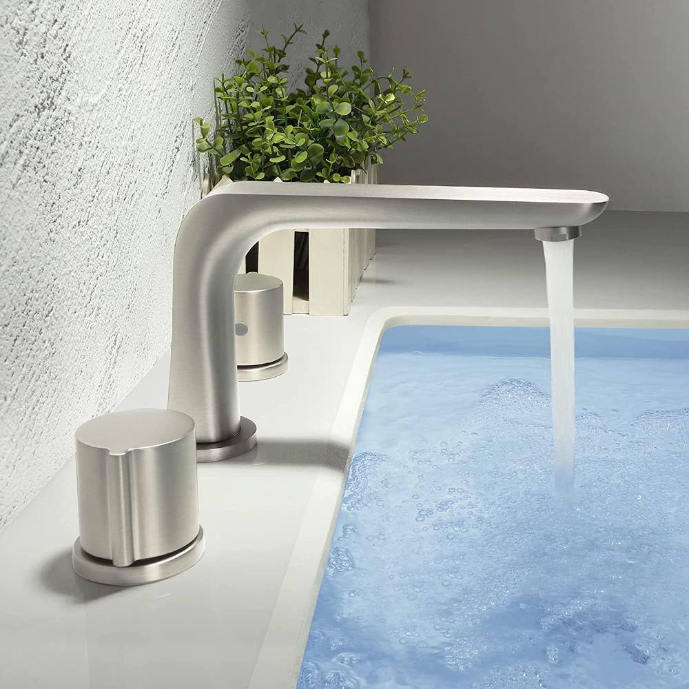 The Unbranded Commercial Metering Double Handle Bathroom Sink Faucet is where modern polished design meets functional brilliance. Its linear silhouette and the rich brushed nickel finish are designed to captivate and transform any bathroom. Pair it against a marble or granite countertop to evoke a sense of luxury, while the easy-to-use double handles offer a satisfying tactile experience. This faucet is not just a fixture, but a statement of sophistication that beckons to those who value both luxury and simplicity in their living spaces.