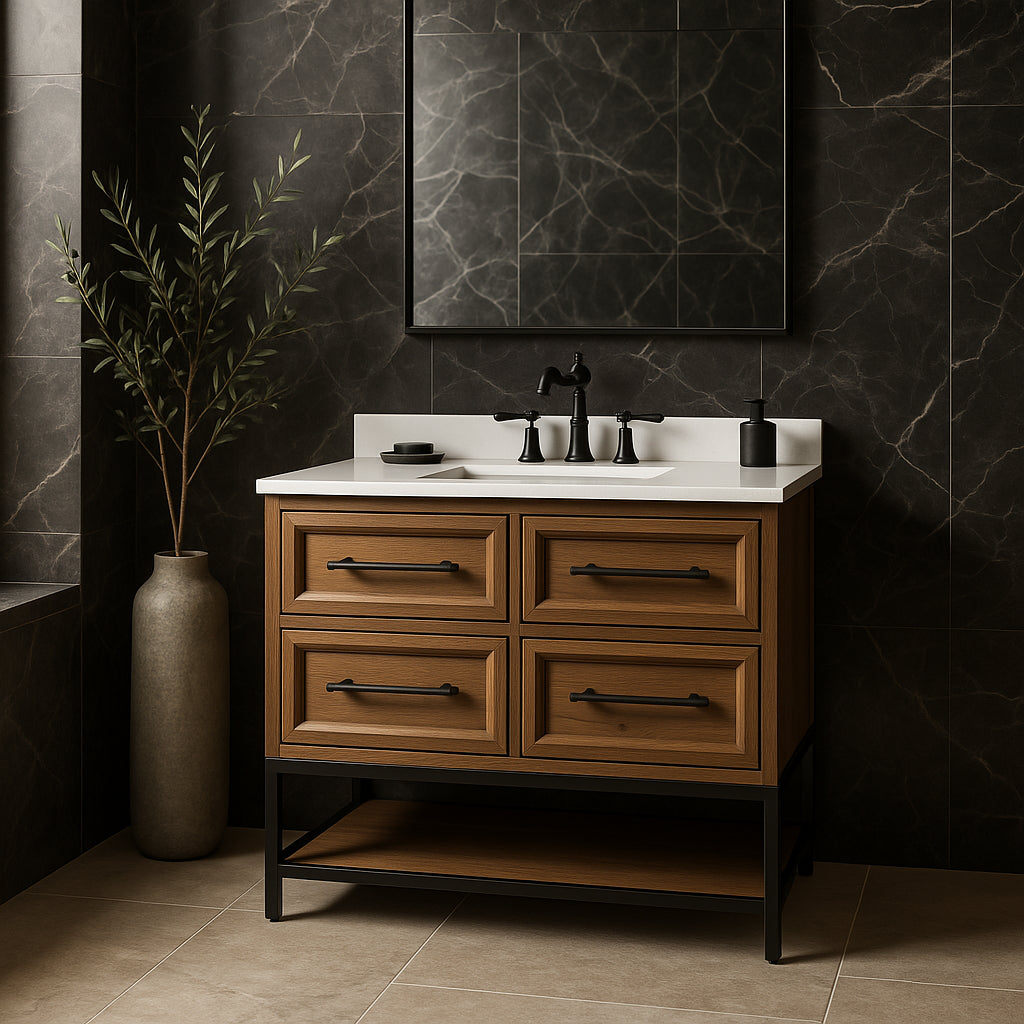 • Pre-Assembled Cabinet: Comes with countertop and basin pre-attached for easy installation.