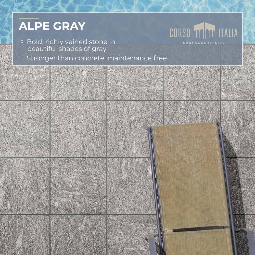 Transform your outdoor living area with the durable and stylish Corso Italia Alpe Gray Porcelain Pavers, and enjoy a space that exudes elegance and functionality.
