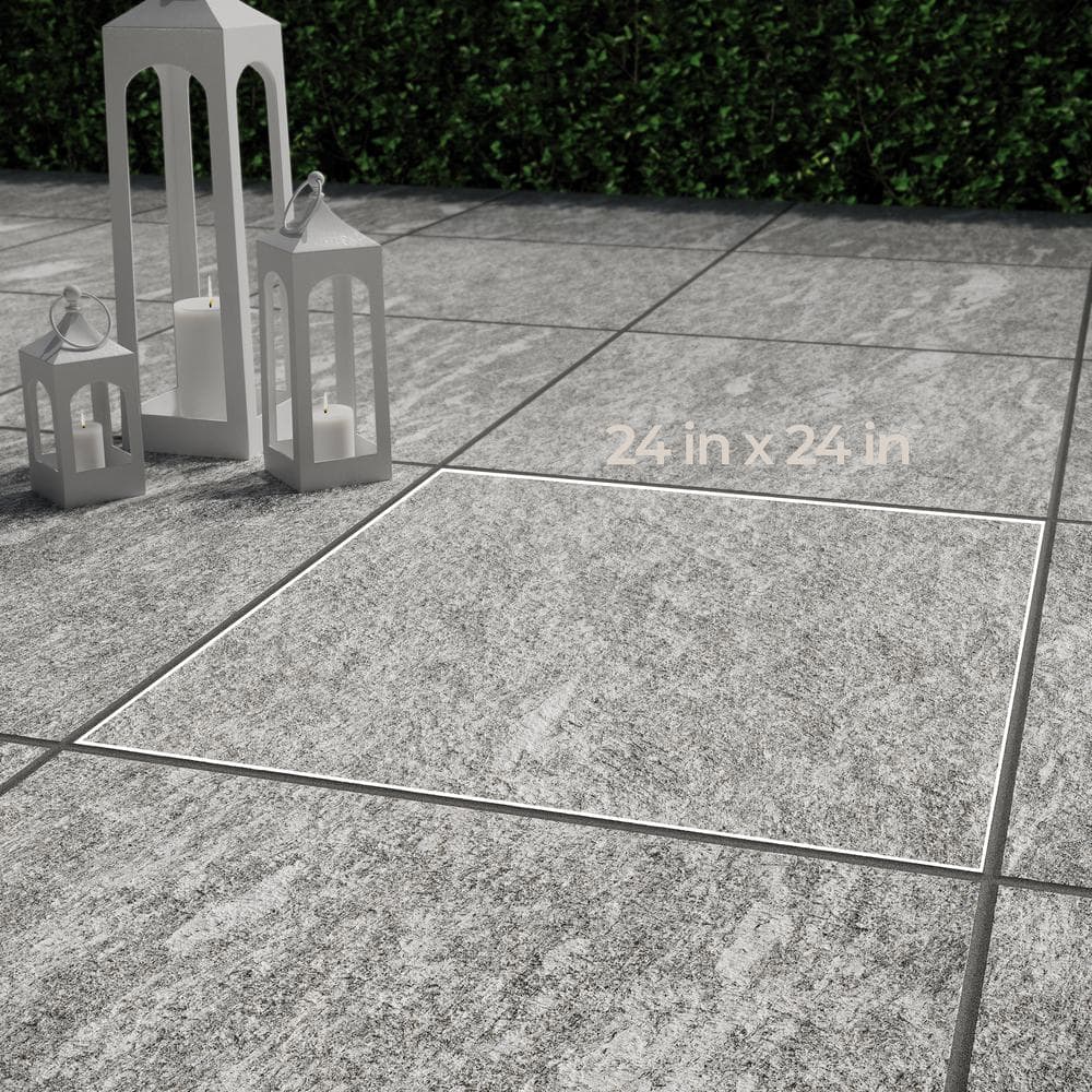 The Corso Italia Alpe Gray Quartzite Stone Look Porcelain Paver replicates the elegant details of quartzite stones, featuring advanced durability and resistance to the elements. With an enhanced thickness for superior strength, it's ideal for creating beautiful, slip-proof surfaces in outdoor settings. Its UV-resistant finish ensures lasting beauty under sunlight or weather conditions.