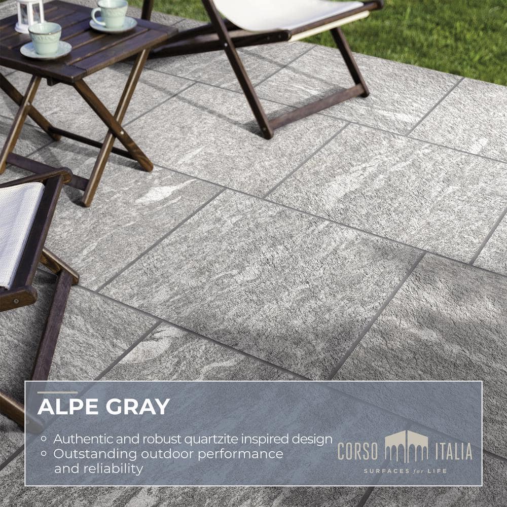 Alpe Gray Quartzite Stone Look Porcelain Paver