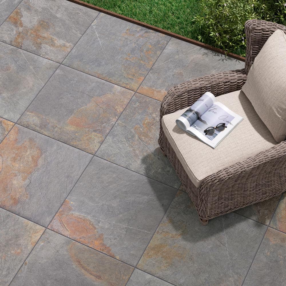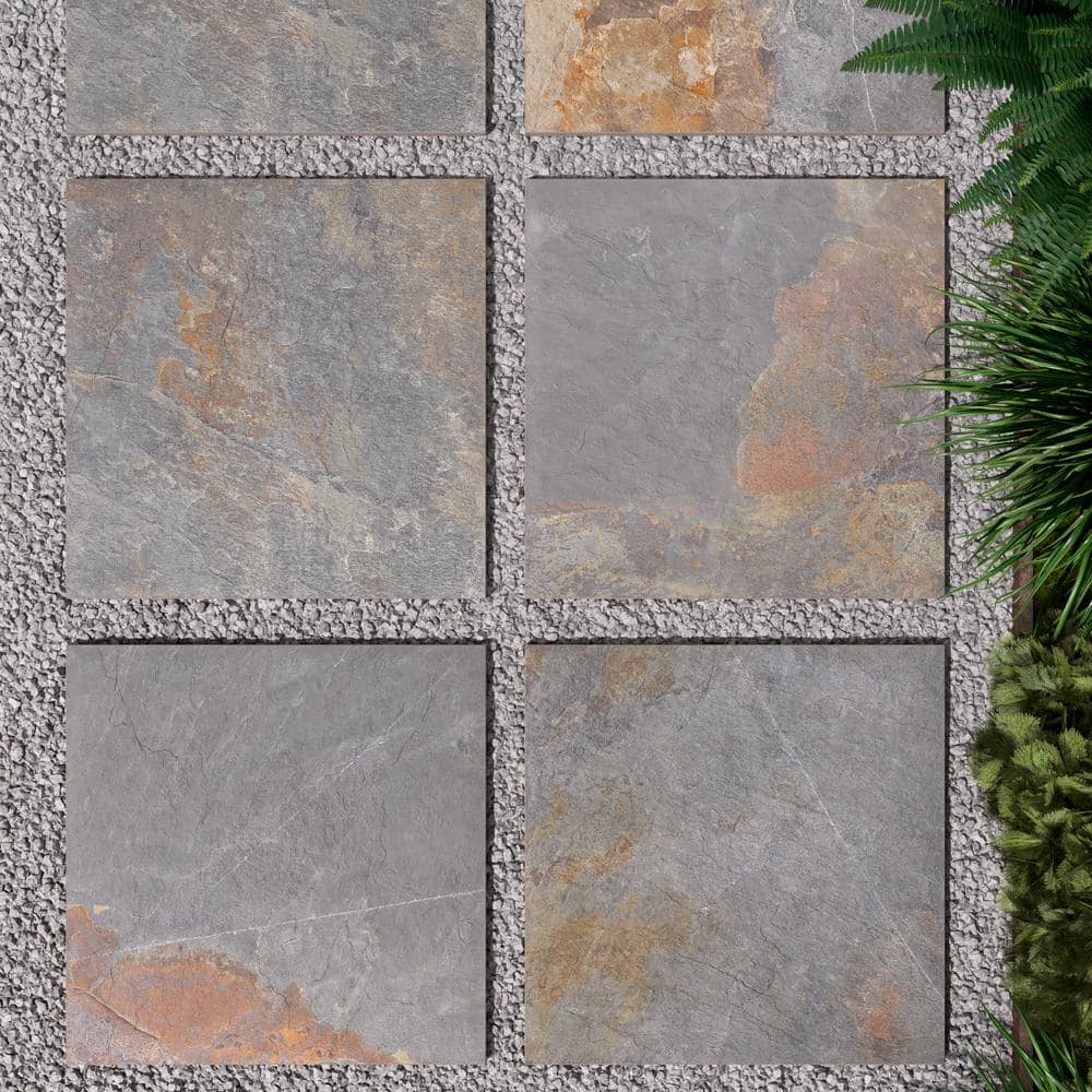 Envelop your outdoor spaces in the warm, golden hues of the Flagstone Gold Porcelain Paver. With its rich, stone-like texture, it adds a touch of rustic elegance to patios and poolside decks. Create a luxurious garden path by pairing these pavers with lush greenery, accentuating their natural tones. The Flagstone Gold, with its inviting appearance and robust design, elevates any landscape, making it a hallmark of refined outdoor living.