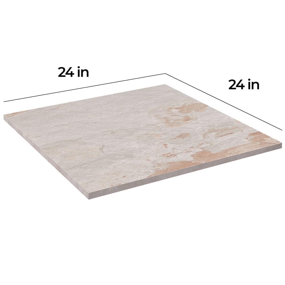 Transform your outdoor spaces with Corso Italia's Flagstone Look Porcelain Paver, offering a stunning stone aesthetic with the durability of porcelain. This robust paver, measuring 24 in. x 24 in. x 0.75 in., provides excellent resistance to UV rays, slips, and weather impact, making it perfect for both residential and commercial applications.
