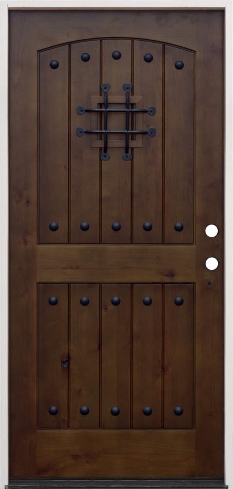 Introducing the Creative Entryways Wood Prehung Front Door—a stunning centerpiece for any home. Crafted from beautiful walnut alder, its solid hardwood core and rustic design provide a blend of strength and charm. Featuring an elegant speakeasy and durable, oil-based polyurethane finish, this door promises enduring beauty and security.