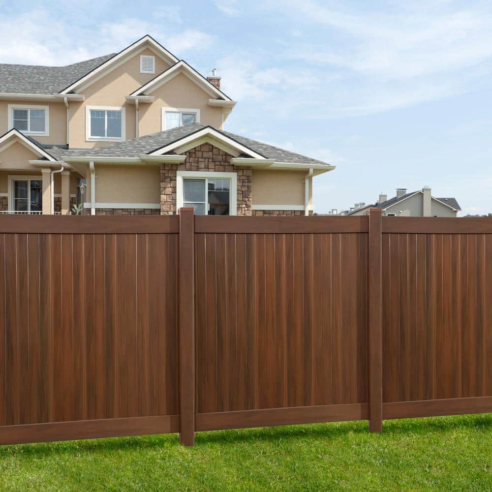 Transform your outdoor space with these stunning woodgrain vinyl fence posts. Aesthetically pleasing with its authentic hickory finish, this post is not just a structural element but a statement of style. Pair it creatively with lush greenery or modern minimalistic landscaping for a breathtaking exterior. Beyond mere utility, this exquisite post embodies refined luxury, offering an elegant transition from your indoor sanctum to the beauty of nature.
