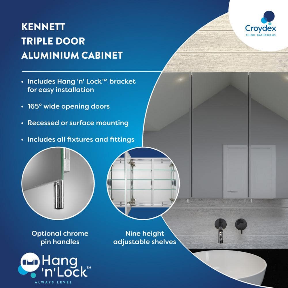 The Croydex Frameless Aluminum Medicine Cabinet blends sophisticated style with practical functionality, perfect for any bathroom aesthetic. Featuring the Hang 'N' Lock system, it simplifies the installation process and can be either surface or recessed mounted. With double-sided mirror doors and ample interior storage, this cabinet optimizes space while providing an elegant solution to bathroom storage needs.