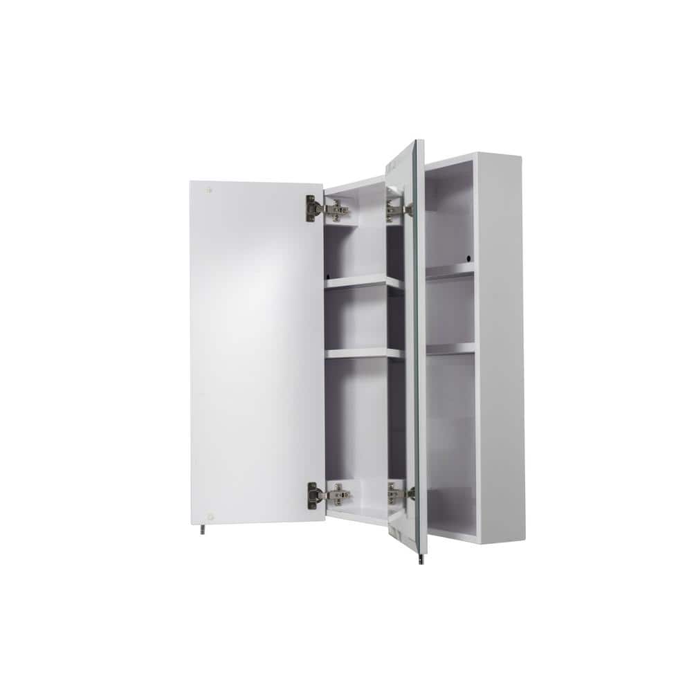 A: The cabinet is made of white steel with durable mirrored doors, ensuring a long-lasting and stylish addition to your bathroom.