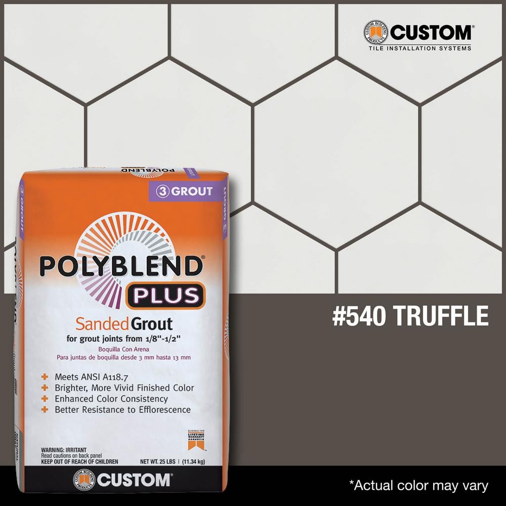 Polyblend Plus Sanded Grout in Truffle offers enhanced color consistency and superior performance for a variety of tile installations. Its advanced polymer modification resists shrinking and cracking, ensuring durable and dense joints suitable for both interior and exterior projects. Ideal for floor, wall, and submerged applications, this grout provides brighter, more vivid finished colors.