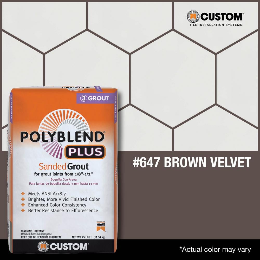 Polyblend Plus Sanded Grout in #647 Brown Velvet is a polymer-modified, cement-based grout designed for interior and exterior applications. Its enhanced formula provides improved performance, color consistency, and resistance to efflorescence, making it ideal for robust and beautiful tile joints in any setting. This grout is suitable for both professional contractors and DIY enthusiasts looking for high-quality, long-lasting results.
