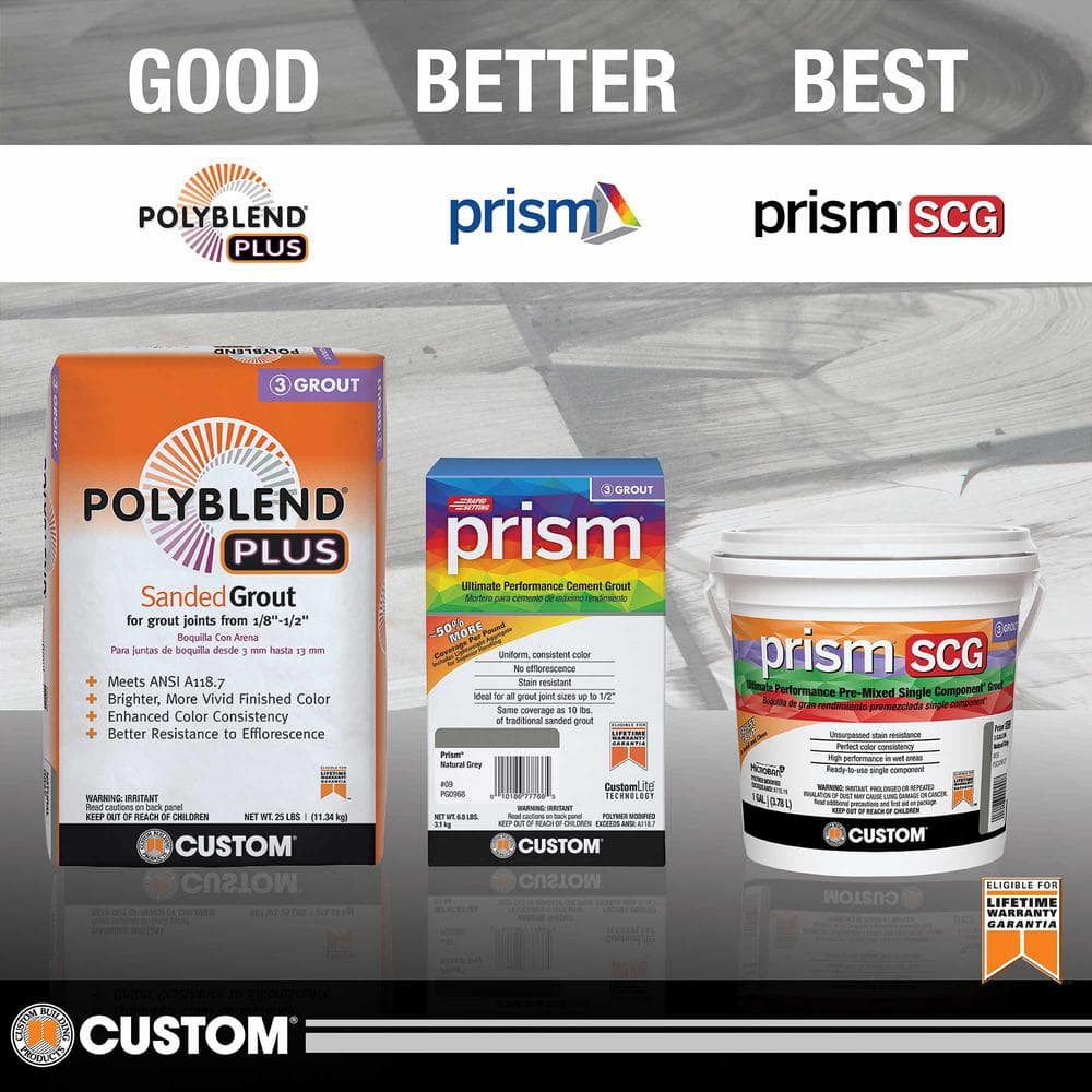 Experience effortless tile installations with Prism Ultimate Performance Grout by Custom Building Products. This pre-mixed, efflorescence-free solution offers color consistency and superior stain resistance for residential and commercial projects. Enhanced with MicroBan, it protects against mold and mildew, making it versatile for indoor and outdoor applications.