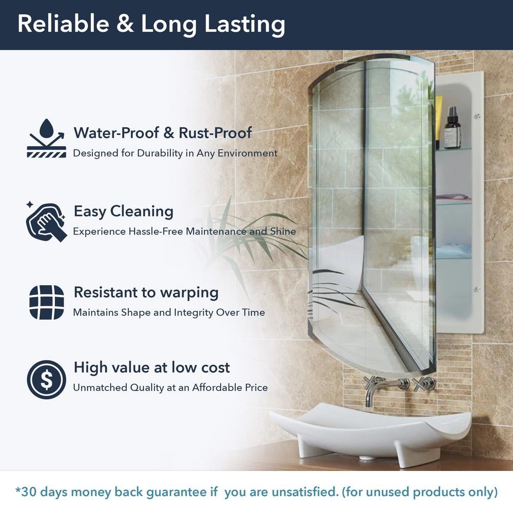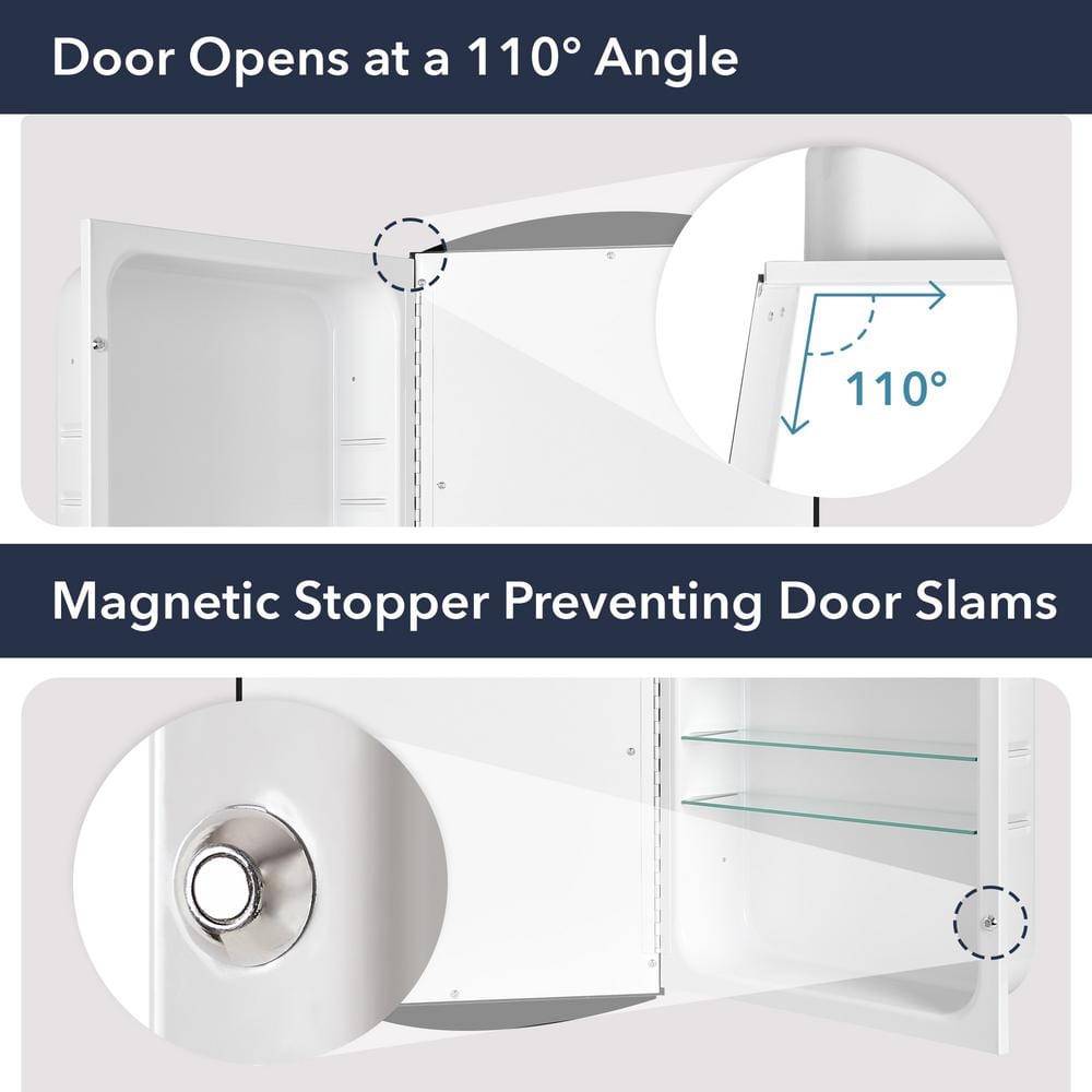 Features Adjustable Shelves,Beveled Edge Mirror,Concealed Hinges,Magnetic Door Catch
