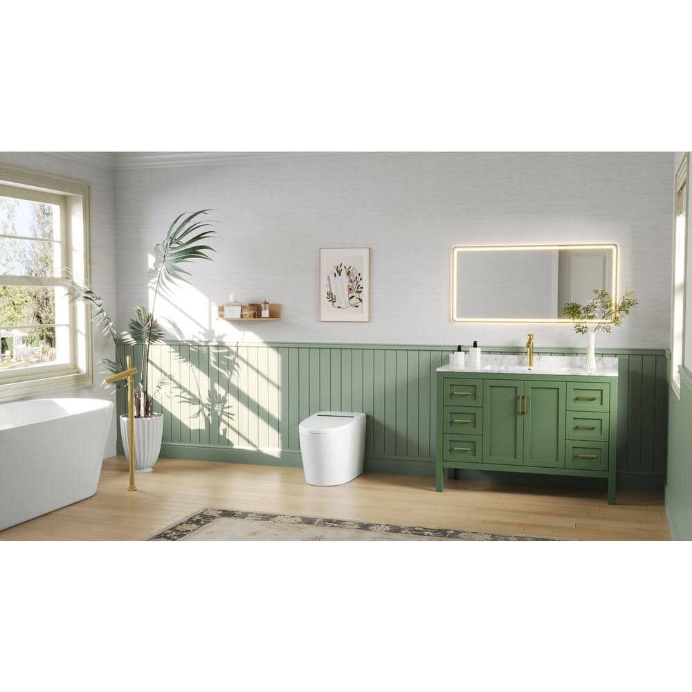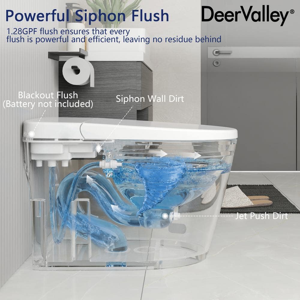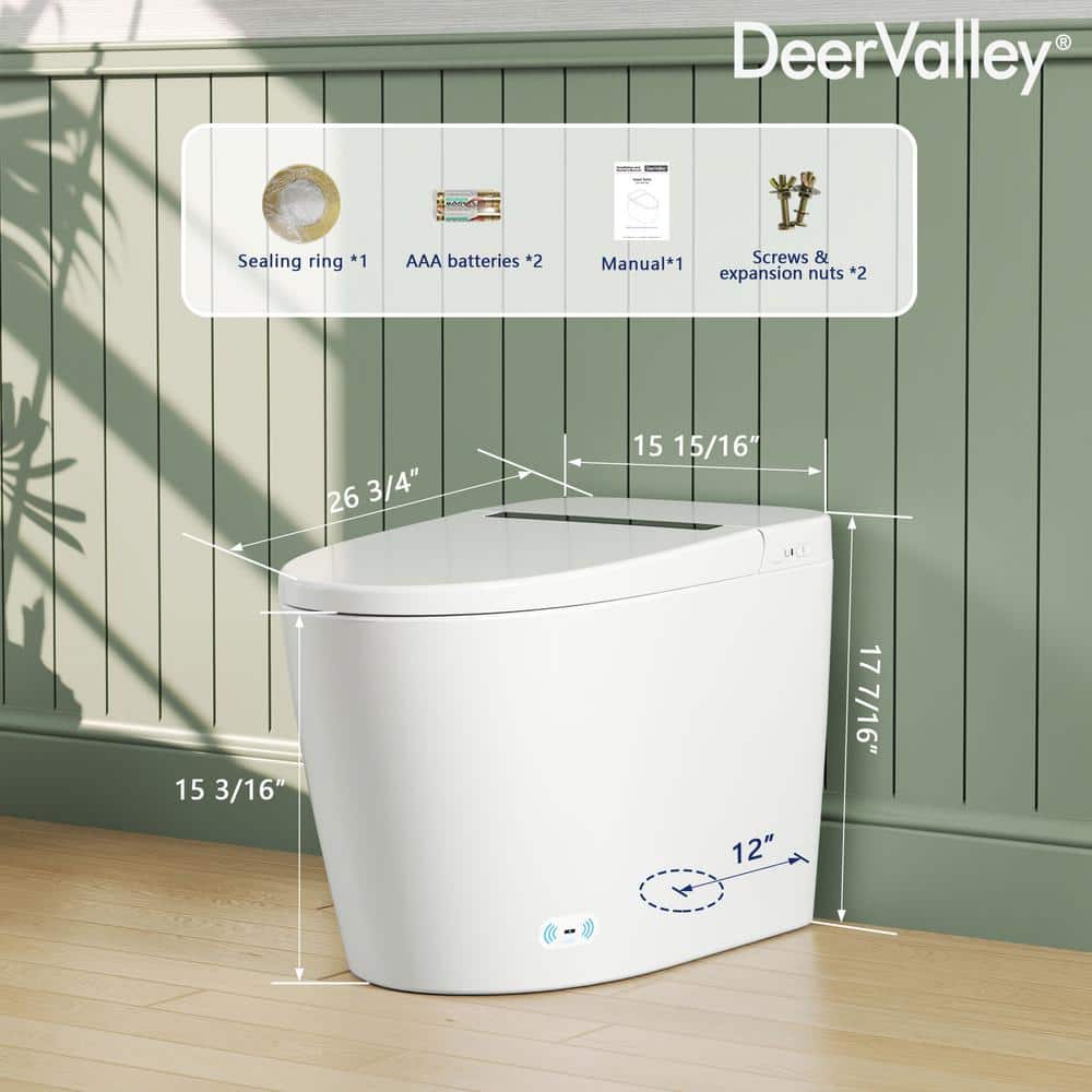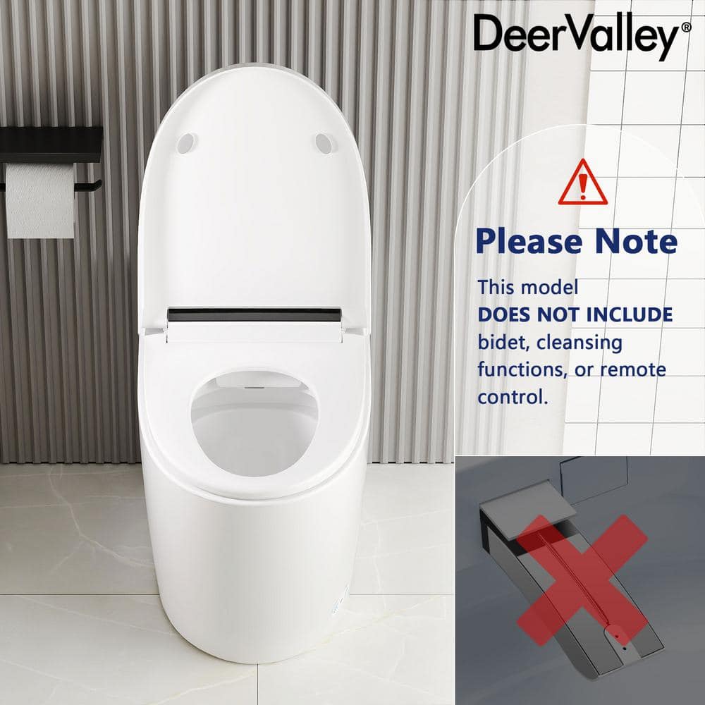 Upgrade your bathroom with the DEERVALLEY 1-Piece 1.28 GPF Toilet featuring a heated seat, auto flush, and energy-saving capabilities. This smart toilet combines luxury and efficiency, with cutting-edge features like a nano-antibacterial glazed bowl to prevent stains and an eco mode to save water and power.
