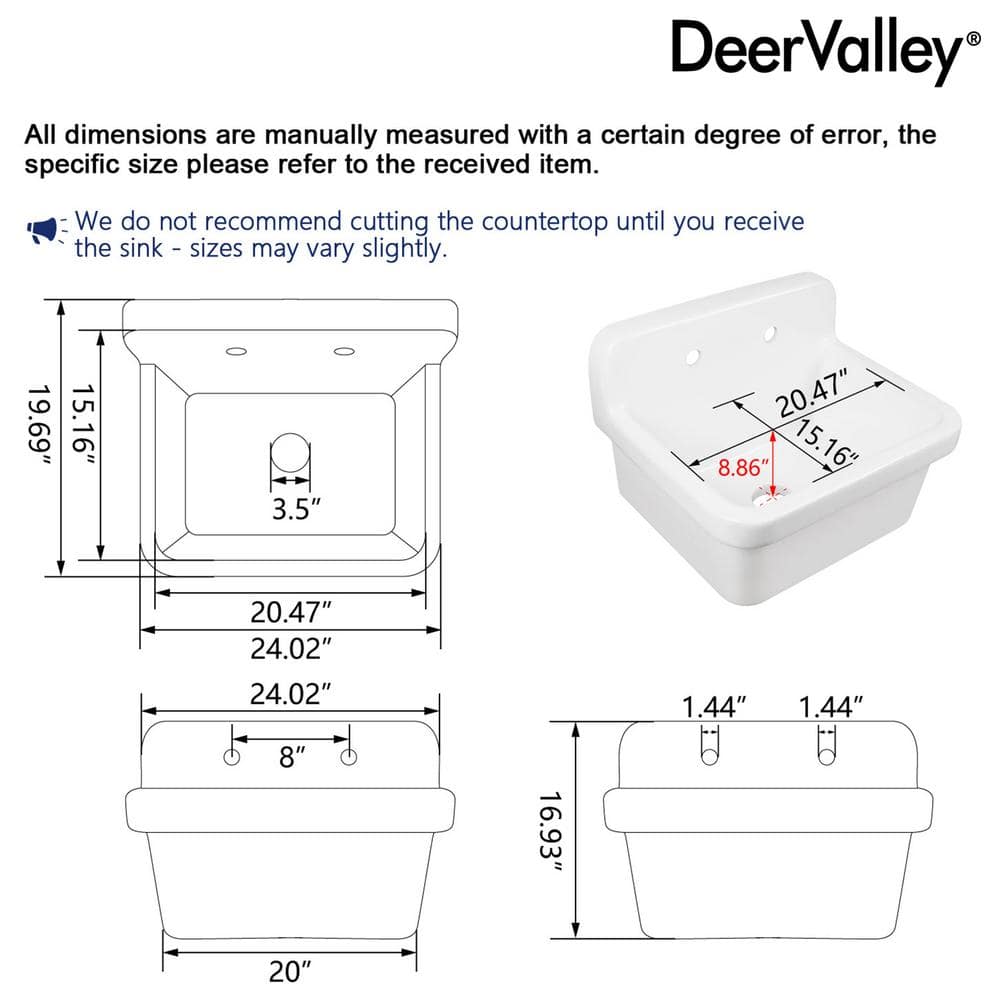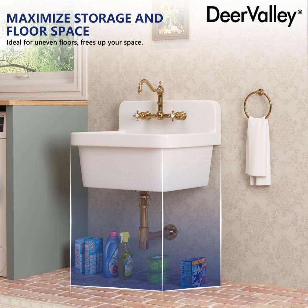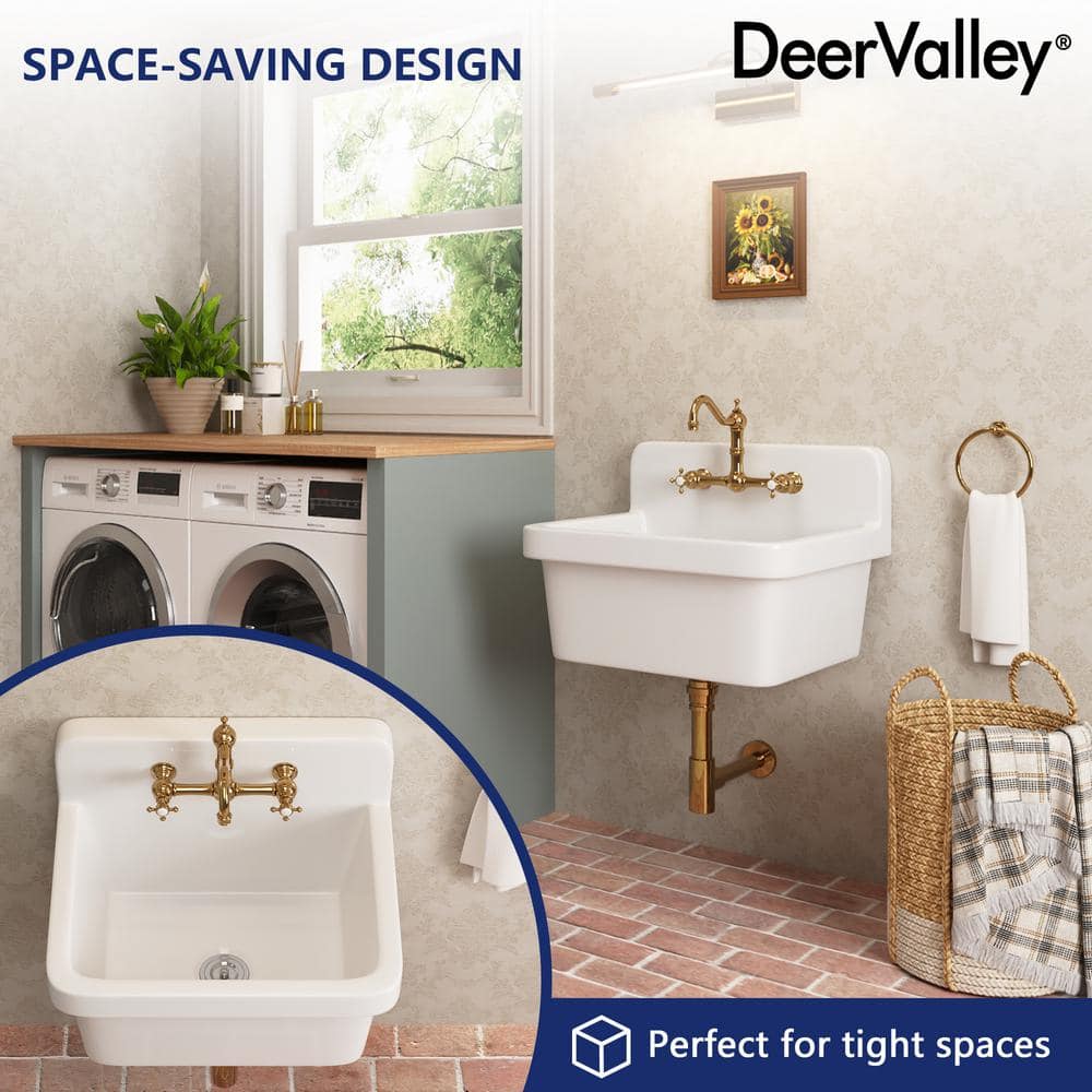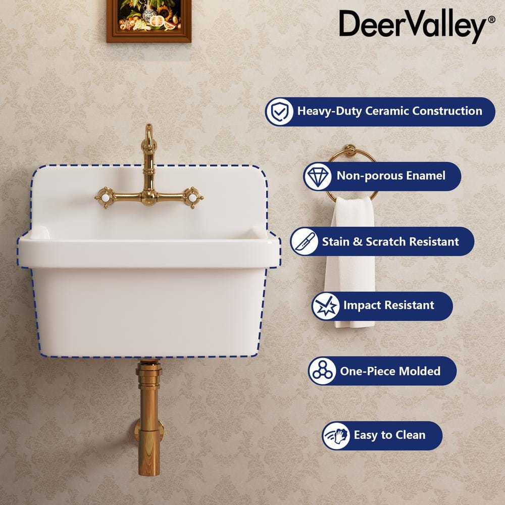 Elevate your laundry or utility space with the DEERVALLEY Ceramic Wall Mount Laundry Utility Sink. This elegant, durable sink features a space-saving wall mount design, perfect for tight areas. Its high backsplash and 8.86-inch deep basin provide splatter protection and ample space for various tasks, enhancing both form and function.