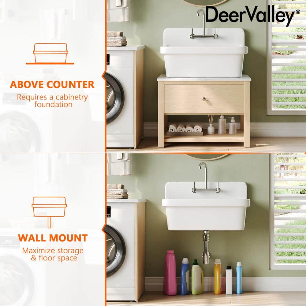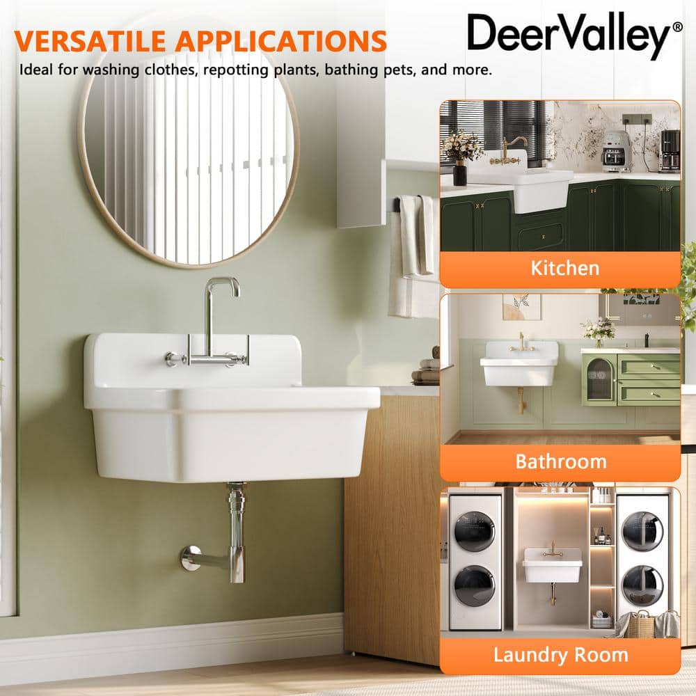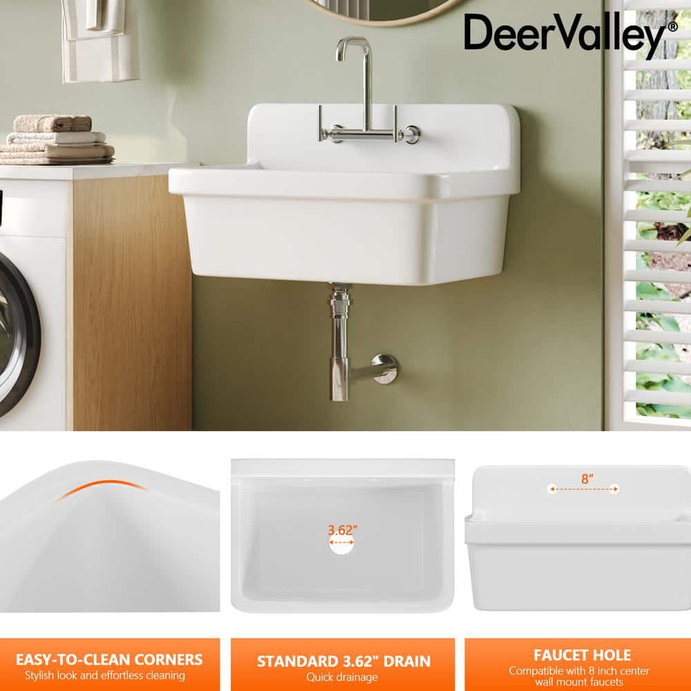 Upgrade your home's utility with the DEERVALLEY Wall Mount Sink, where durability meets design—order yours today!