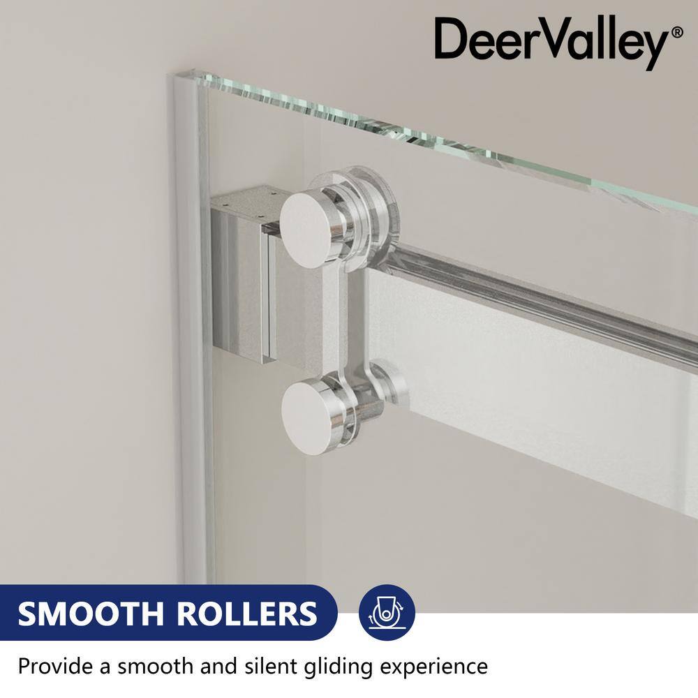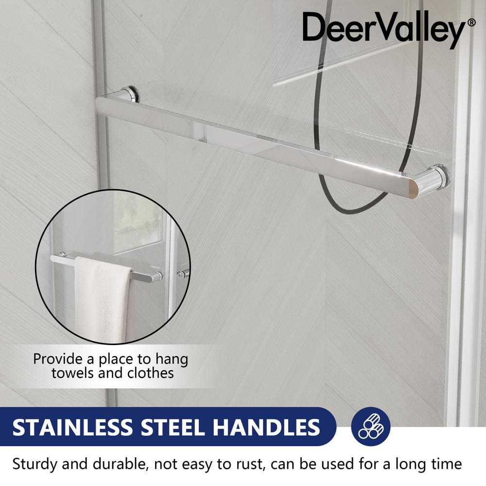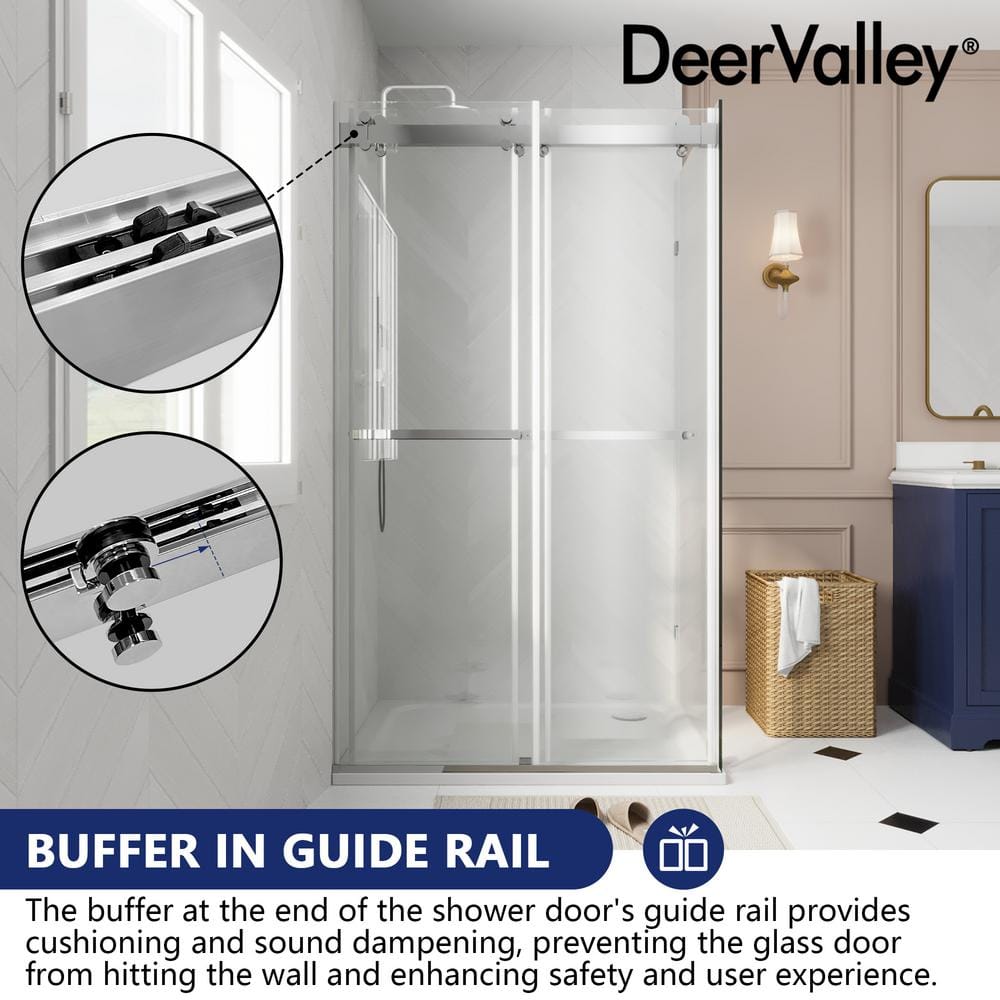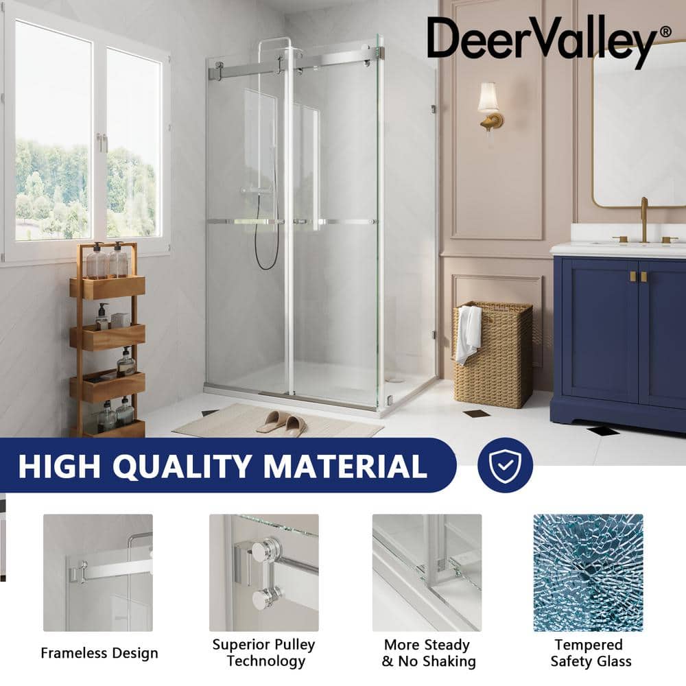 Elevate your bathroom sanctuary with the DEERVALLEY 43-inch Frameless Sliding Shower Enclosure. Built with premium 3/8-inch tempered glass, this sleek corner unit offers both durability and luxury, complete with a softly-gliding door for a seamless shower experience. Its contemporary chrome finish complements any modern space, ensuring your bathroom remains a stylish oasis.