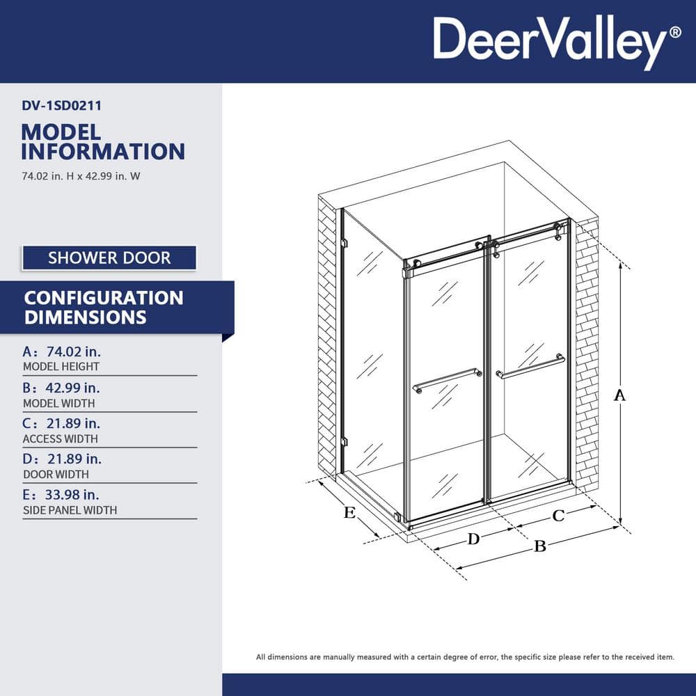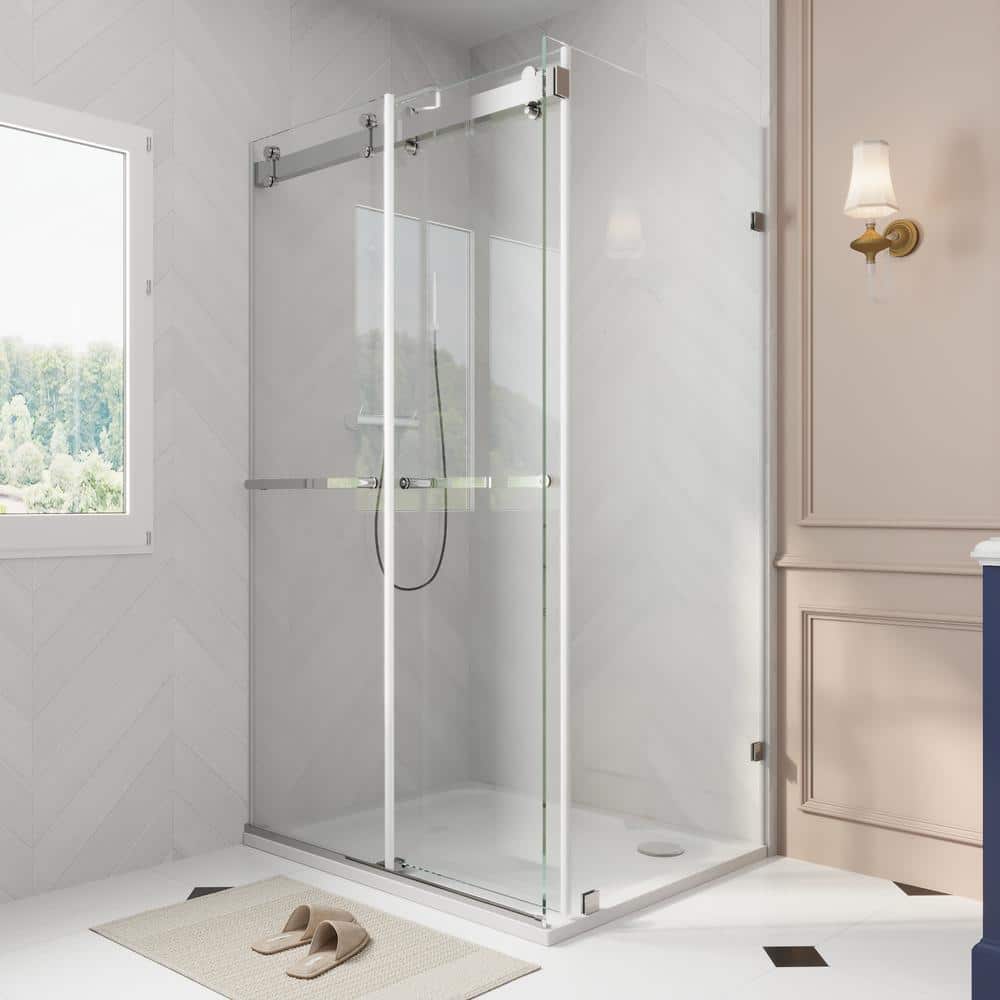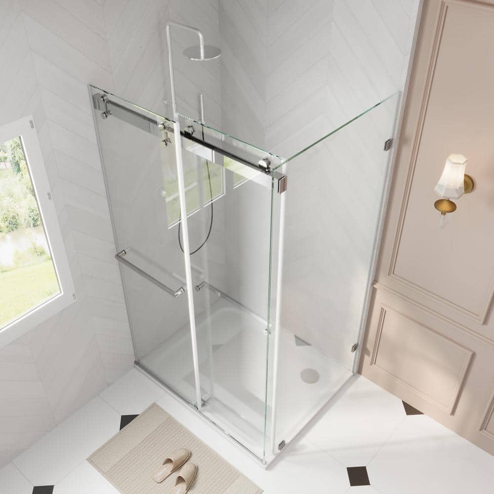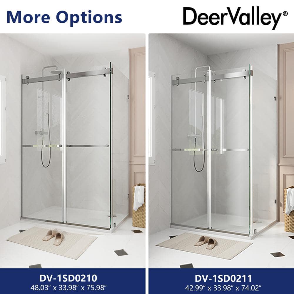 DEERVALLEY 43 in. W x 34 in. D x 74 in. H Rectangular Sliding Frameless Corner Shower Enclosure in Chrome with 3/8 in. Clear Glass