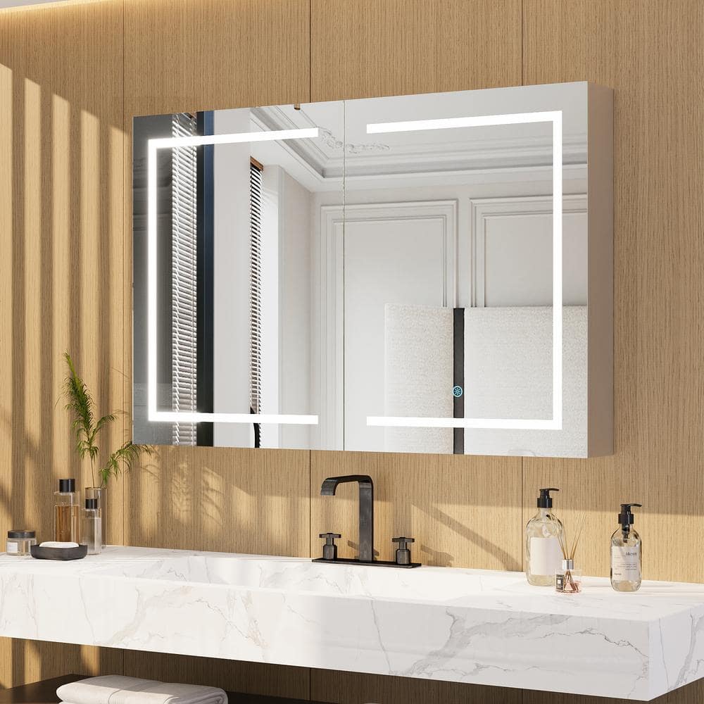 This DeerValley LED Lighted Medicine Cabinet is a masterpiece of modern design, transforming any bathroom into a luxurious retreat. The striking LED lighting softly combines with the state-of-the-art anti-fog mirror, creating a harmonious blend of function and style. Its sleek, silver aluminum finish and spacious double doors make it ideal for the contemporary home. An essential addition for those who value elegance and functionality, this cabinet not only meets your storage needs but elevates the entire bathroom ambiance.