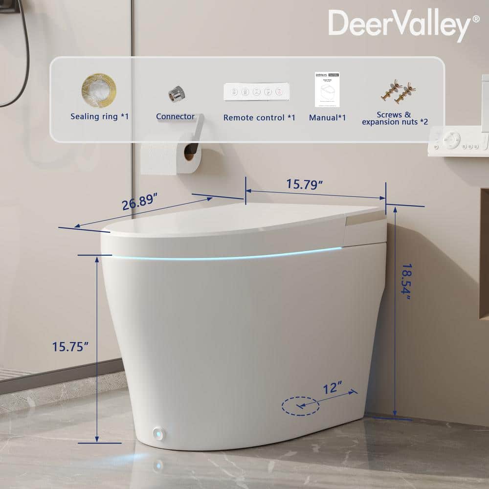 DEERVALLEY Elongated Smart Toilet Bidet with Remote and Heated Seat - White