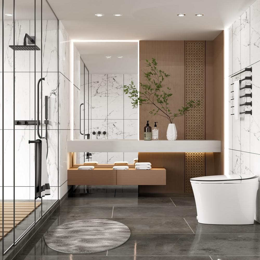 Revolutionize your bathroom experience with the DEERVALLEY Smart Toilet featuring a tankless design and intelligent bidet seat. Enjoy unparalleled hygiene and comfort with its heated seating, warm water cleansing, and adjustable air drying. The integrated remote control and auto flush add a touch of luxury and convenience to your daily routine.