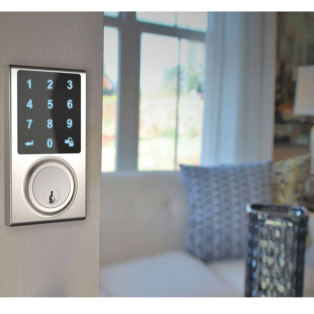 Secure your home effortlessly with the Delaney Polished Chrome Touchscreen Z-Wave Smartlock. This sleek and modern electronic deadbolt allows for keyless entry via a touchscreen code, mobile app, or traditional key, featuring up to 30 personal user codes. Its robust motor-driven deadbolt ensures ANSI Grade 3 security and integrates seamlessly with your smart home via Z-Wave technology.