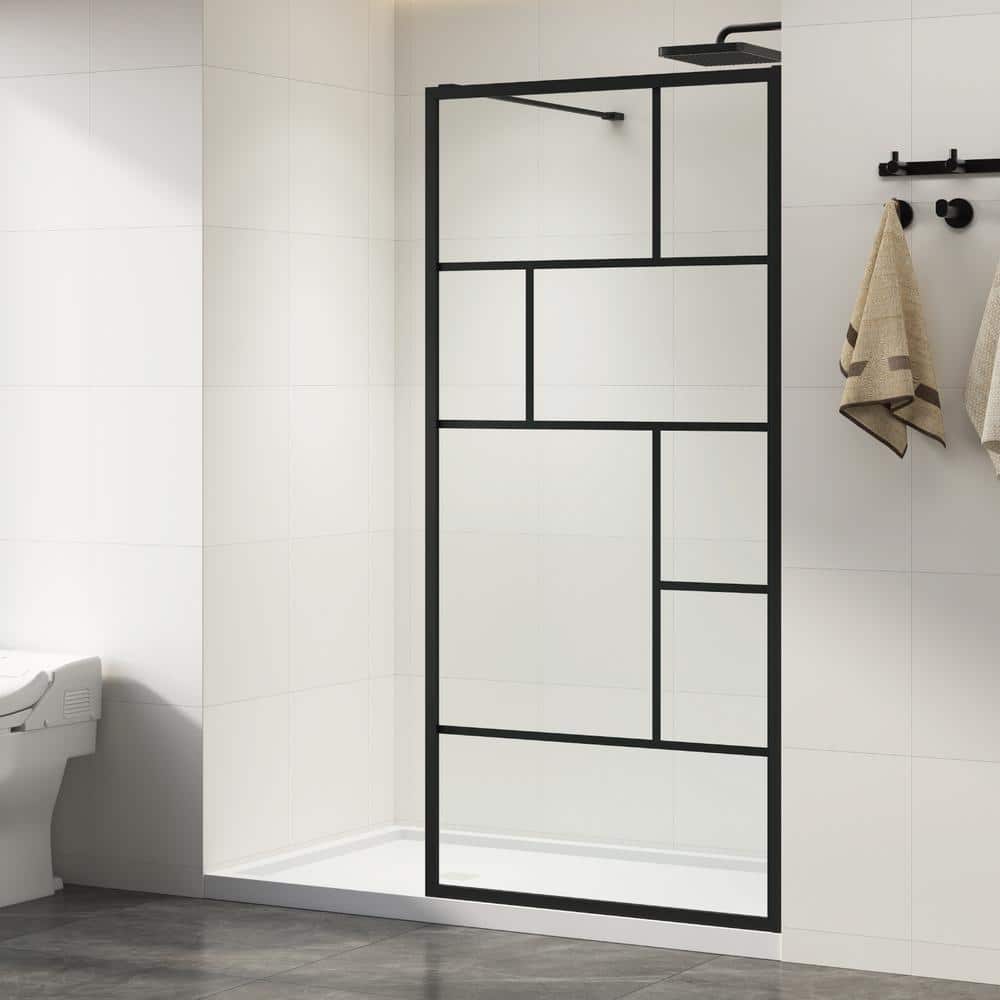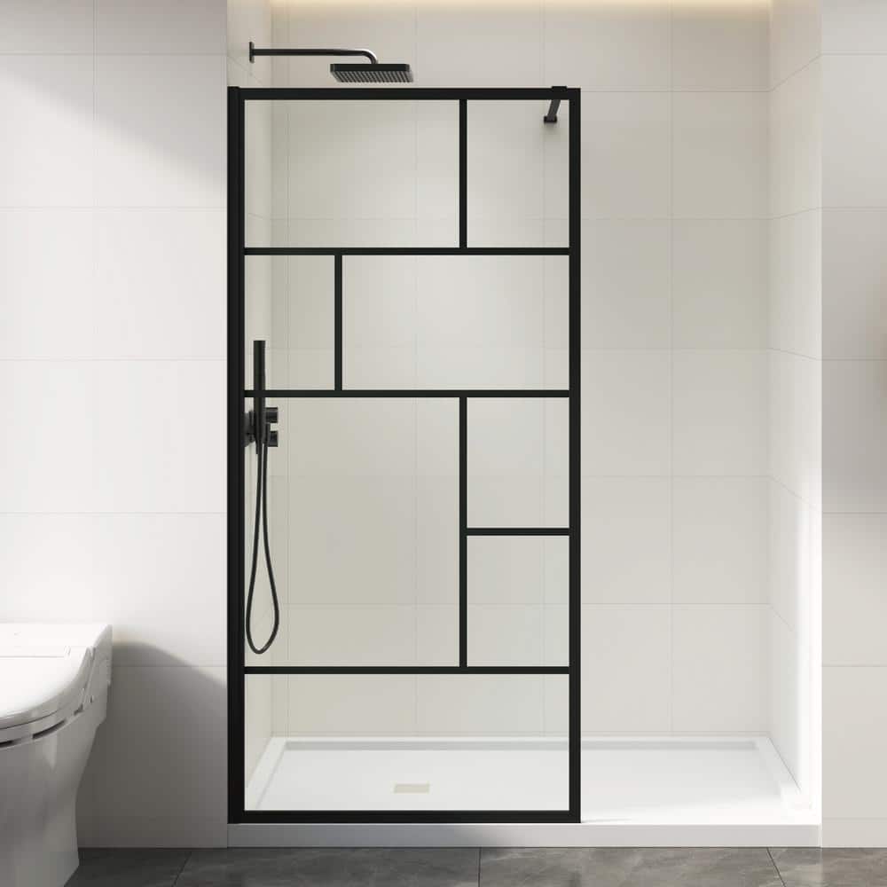The LuxeSpa Grid Screen Shower Door by DELUXE DL LIVING brings a touch of contemporary elegance to any bathroom. Its matte black finish and clear tempered glass create a stylish, open entry for a modern shower experience. This durable, easy-to-clean screen is perfect for those looking to combine functionality with a bold design statement.