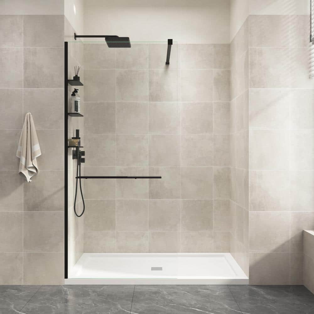 DELUXE DL LIVING LuxeSpa 36 in. W x 76 in. H Fixed Frameless Screen Shower Door in Matte Black with 3/8 in. Thick Clear Tempered Glass