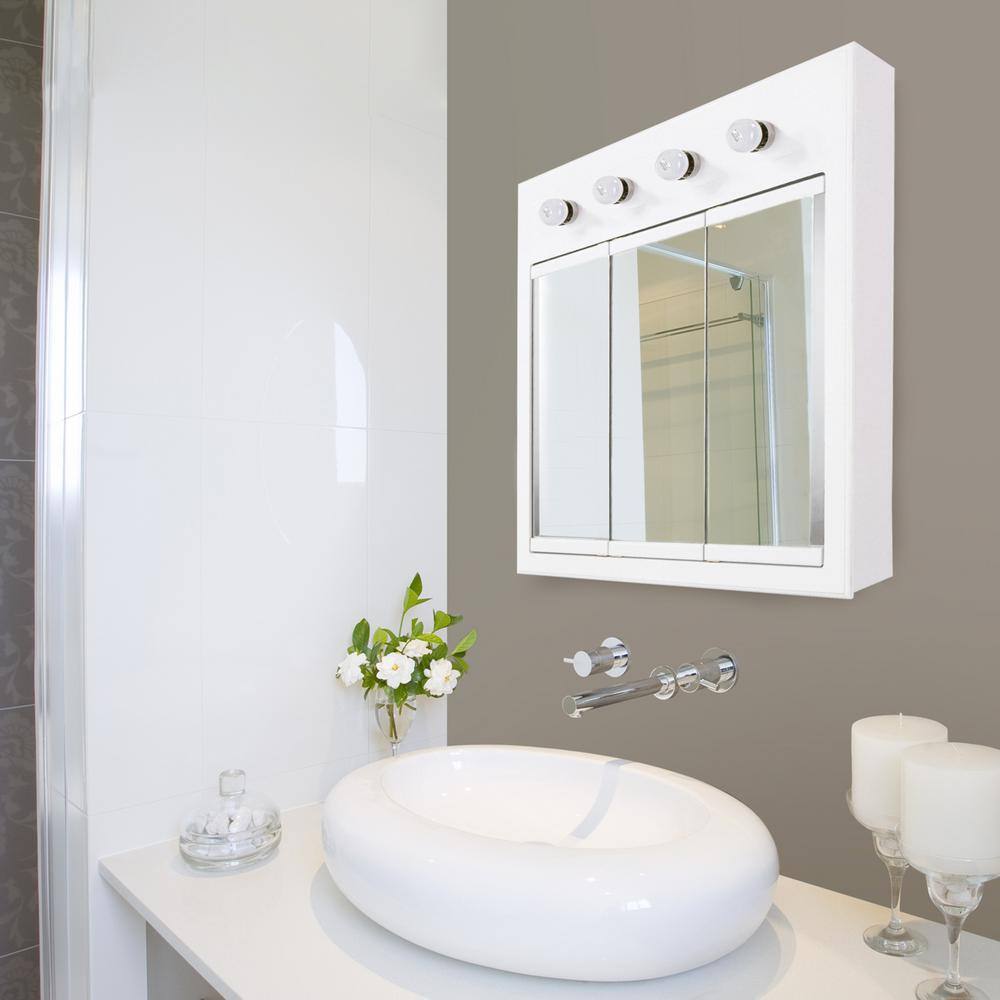 Elegant Lighting: Equipped with 4 upper fixtures, this cabinet allows you to customize your bathroom lighting by selecting your own bulbs.