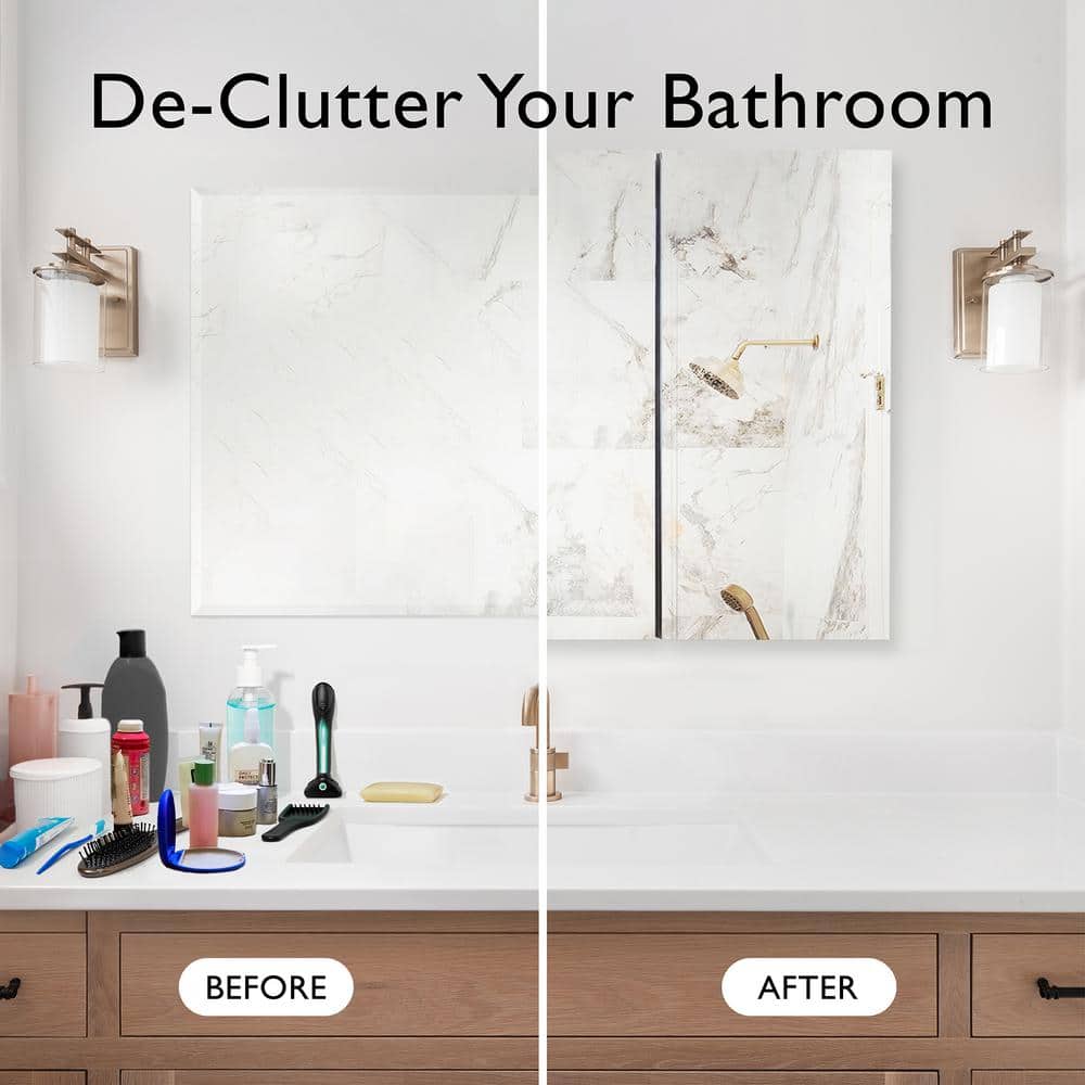 Adjustable Shelves,Beveled Edge Mirror,Concealed Hinges |