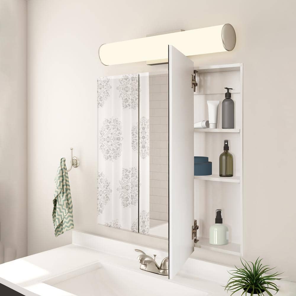Enhance your bathroom with the Design House Cyprus Frameless Tri-View Medicine Cabinet. Offering both style and functionality, this cabinet features three mirrored doors and two adjustable shelves for ample storage. Perfect for maintaining a clutter-free space, it supports both recessed and surface mounting for versatile installation.