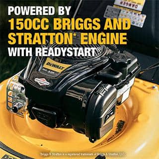 Engine: Equipped with a 150cc Briggs & Stratton ReadyStart Engine that ensures no prime, no choke starting.