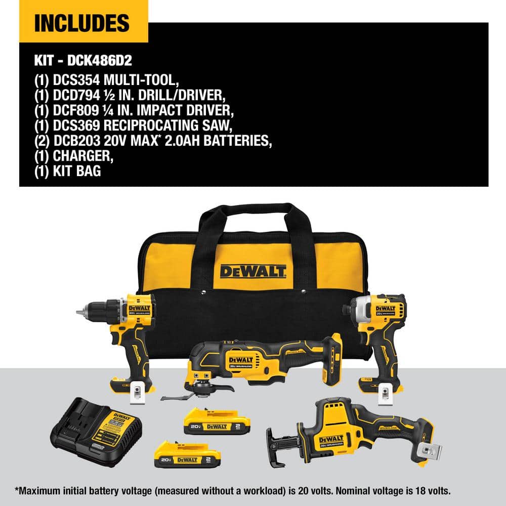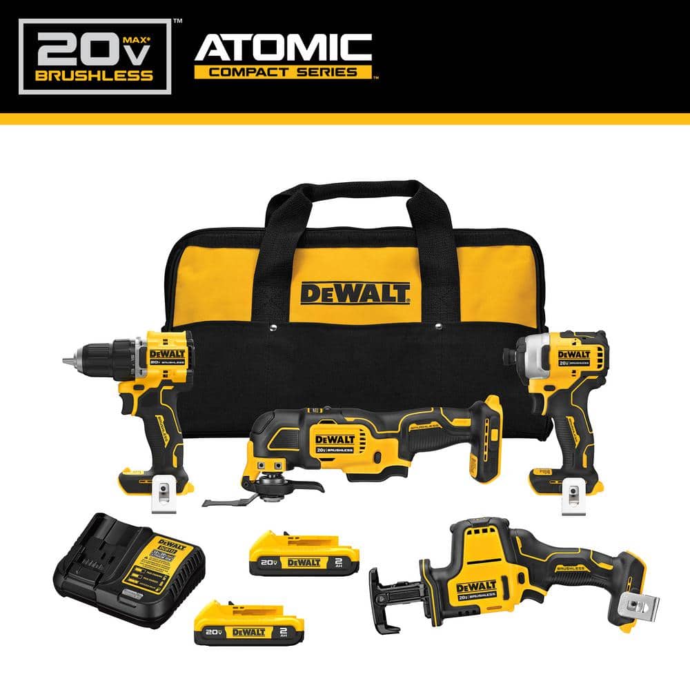 DEWALT ATOMIC 20-Volt Lithium-Ion Cordless Brushless Combo Kit (4-Tool) with (2) 2.0Ah Batteries, Charger and Bag