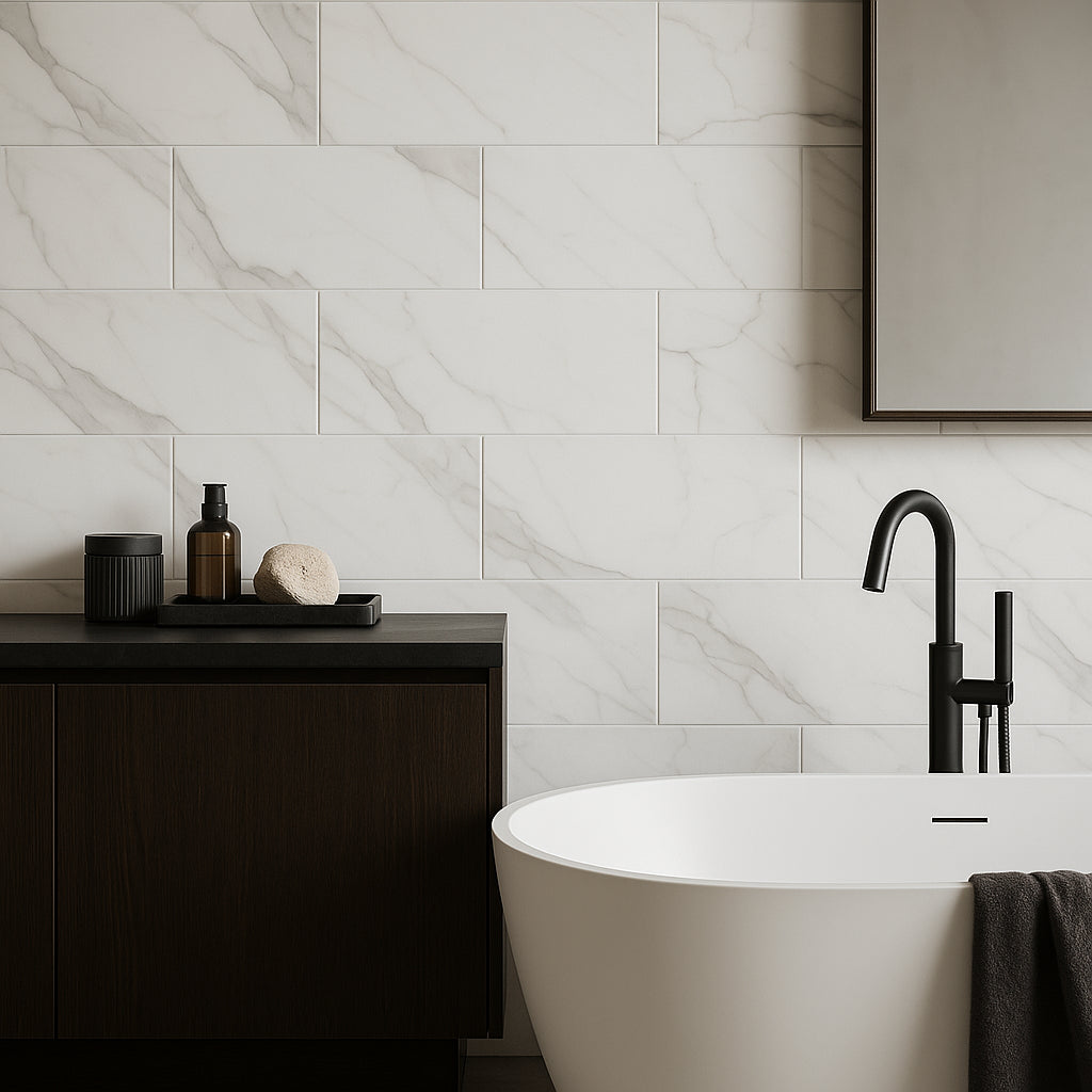 Montalcino Dimarmi Bianco II Porcelain Tile - 12 x 24 Matte Finish