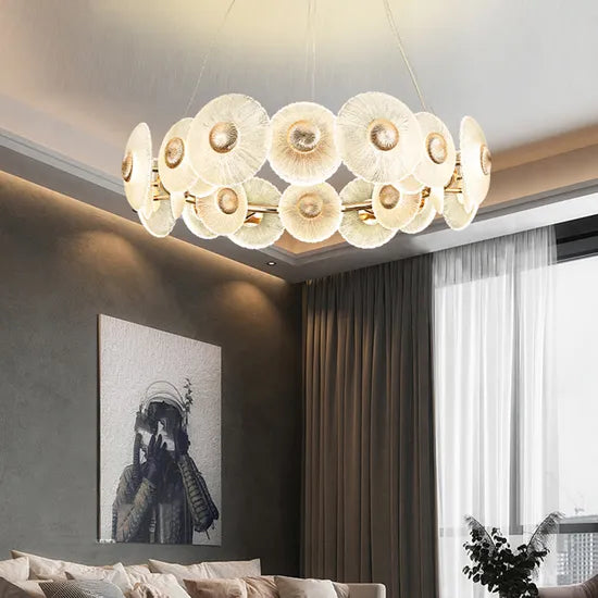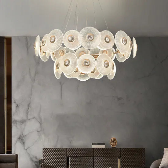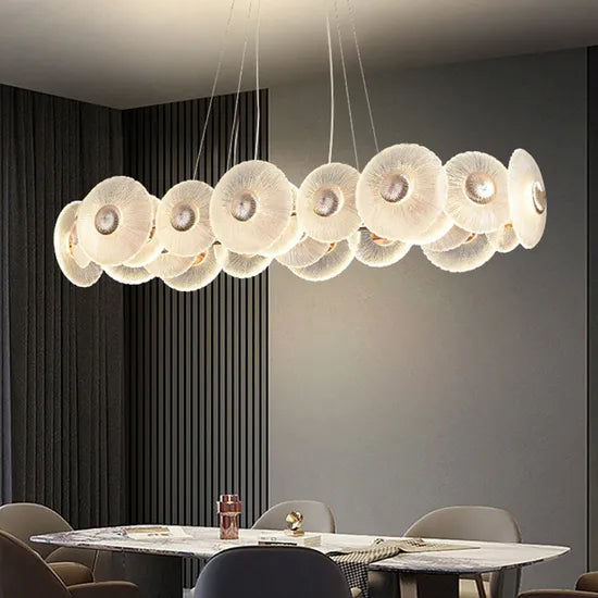 Discover the luminous allure of this glass pendant chandelier today and transform your living space with its elegant glow!